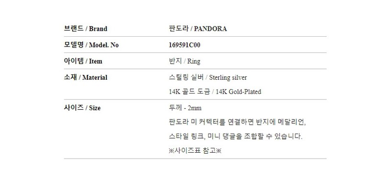 판도라 PANDORA 169591C00 판도라 미 골드 여성 반지