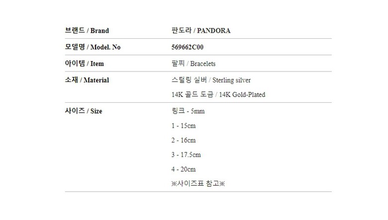 7. 주요 사양 스털링실버 14K 골드도금 팔찌