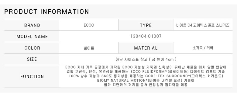 에코 ECCO 130404 01007 바이옴 C4 고어텍스 골프 남성 스니커즈