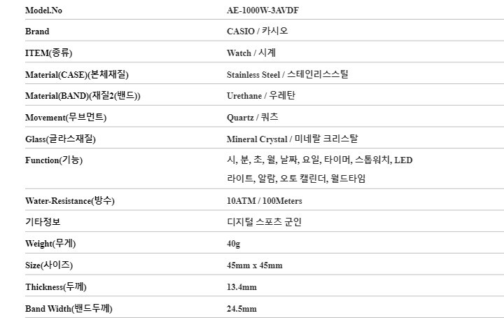 카시오 CASIO AE-1000W-3AVDF 남성 시계