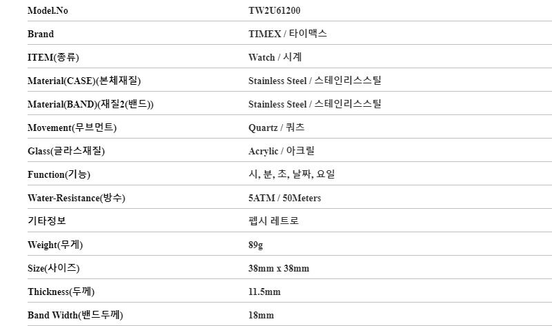 7. 주요 사양 스테인리스스틸 시계 쿼츠
