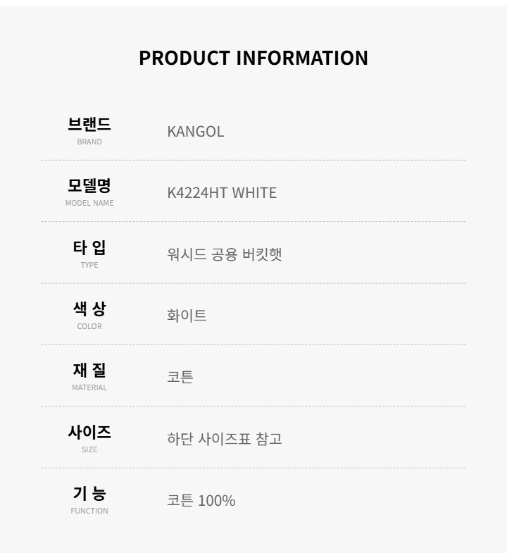 캉골 KANGOL K4224HT WHITE 워시드 공용 버킷햇