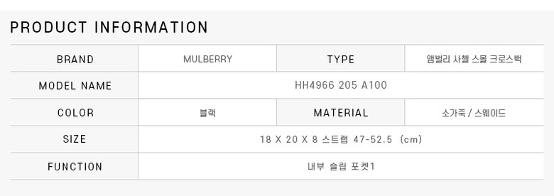 | 5. 제조사 | 멀버리/MACHO-병행수입 |