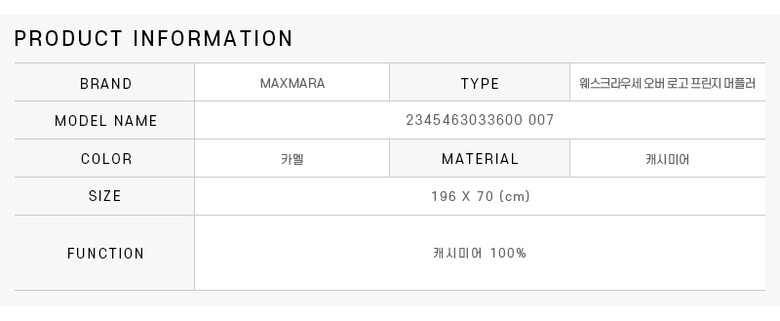 막스마라 MAXMARA 2345463033600 007 캐시미어 여성 머플러