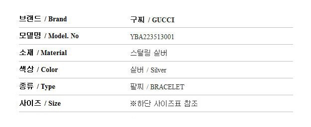 구찌 GUCCI YBA223513001 여성 팔찌 악세사리