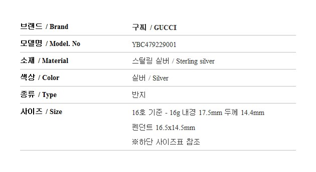 | 1. 소재 / 순도 / 밴드재질 | 실버 / 쥬얼리 - 스털링실버 |