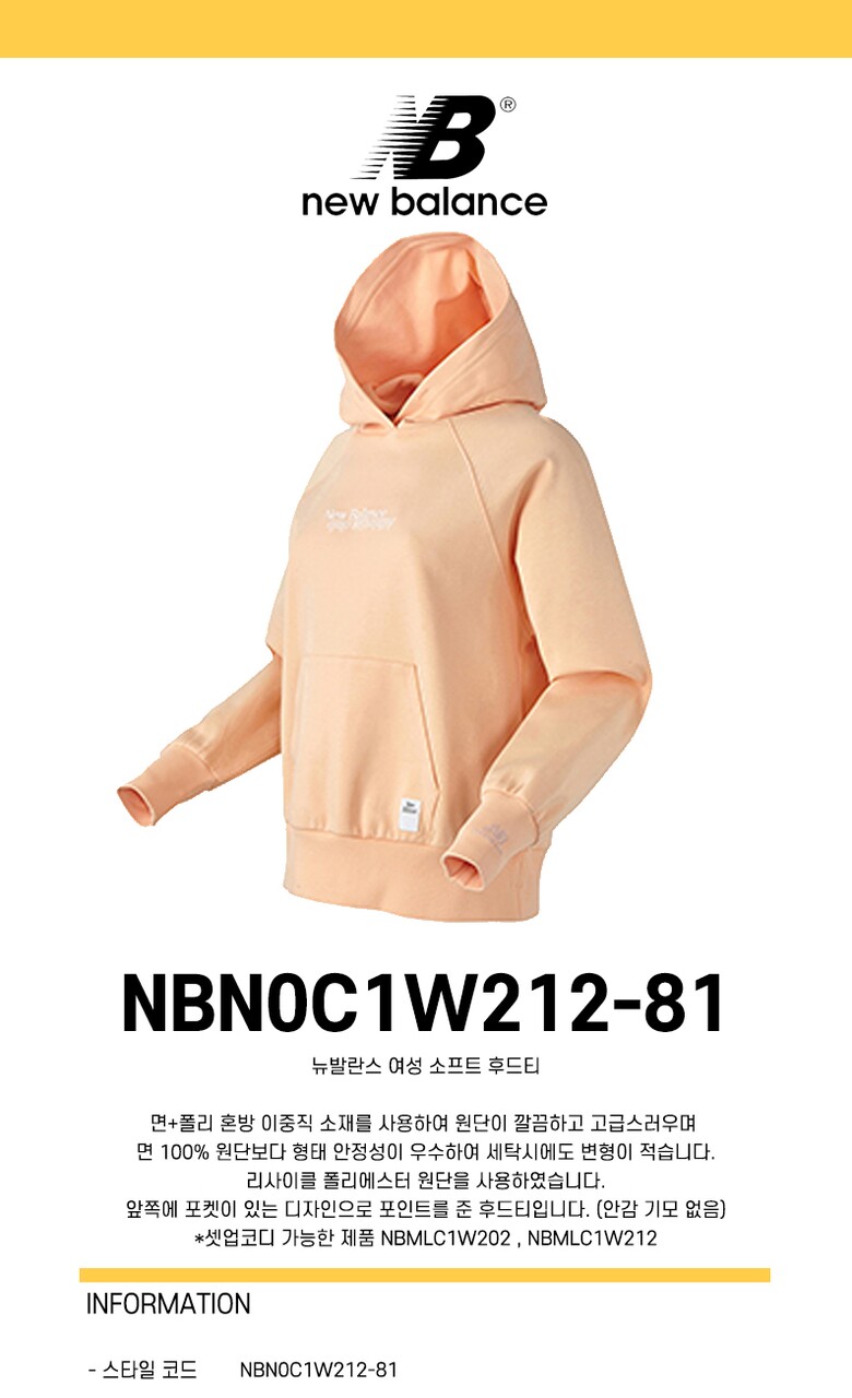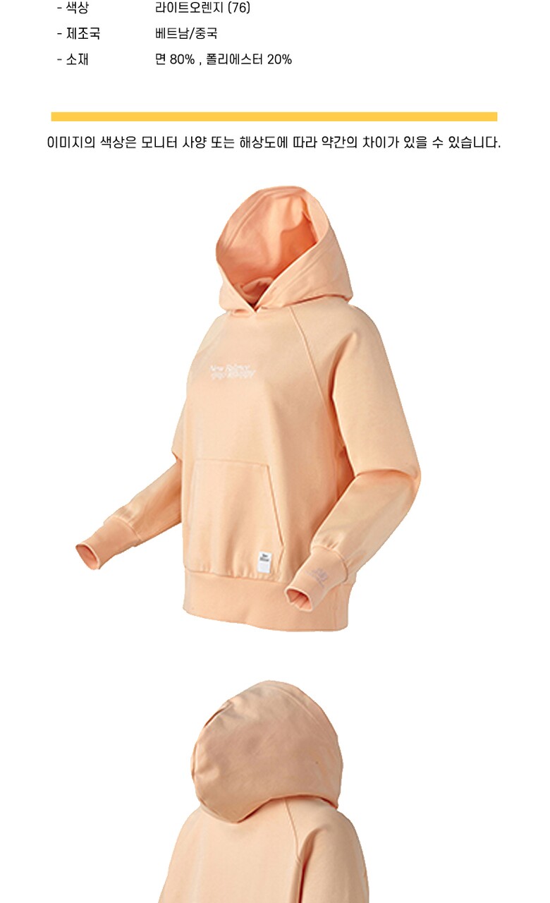 뉴발란스 여성 소프트 후드티 긴팔티 NBN0C1W212-81 라이트오렌지