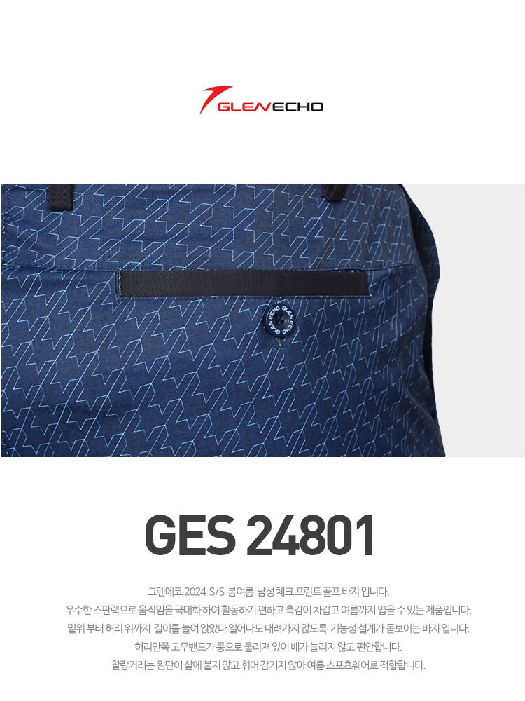 남성 봄 여름 골프웨어 편한 스판 체크 골프바지 네이비