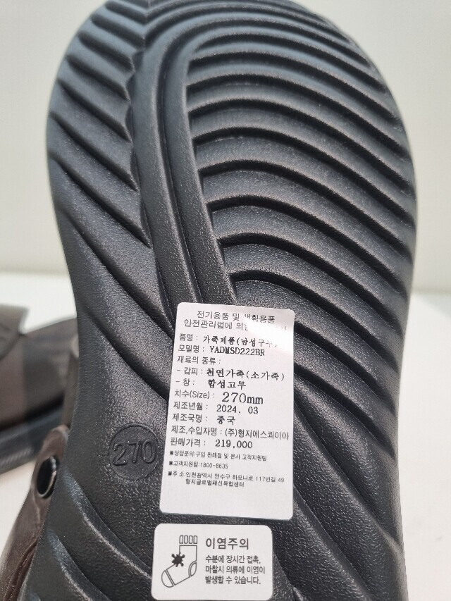 | 1. 제품 소재 (운동화인 경우에는 겉감, 안감을 구분하여 표시) | 소가죽 |
