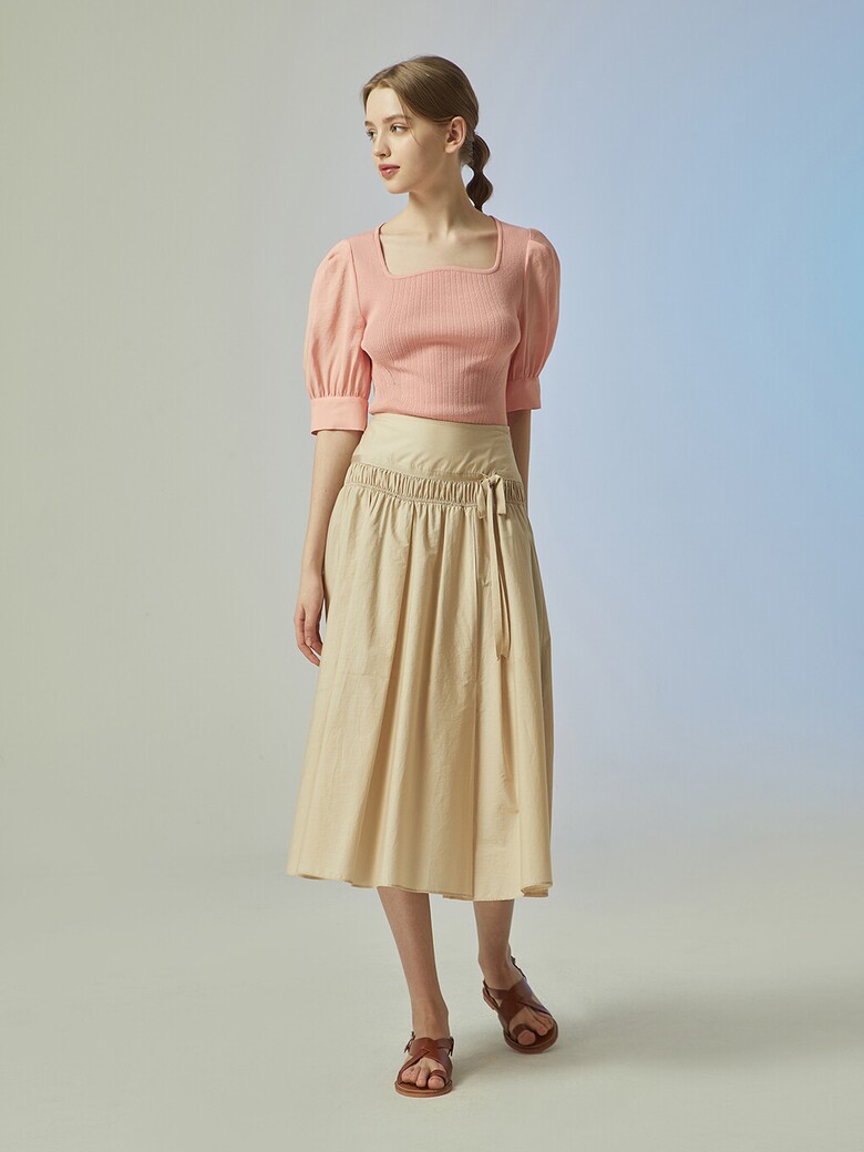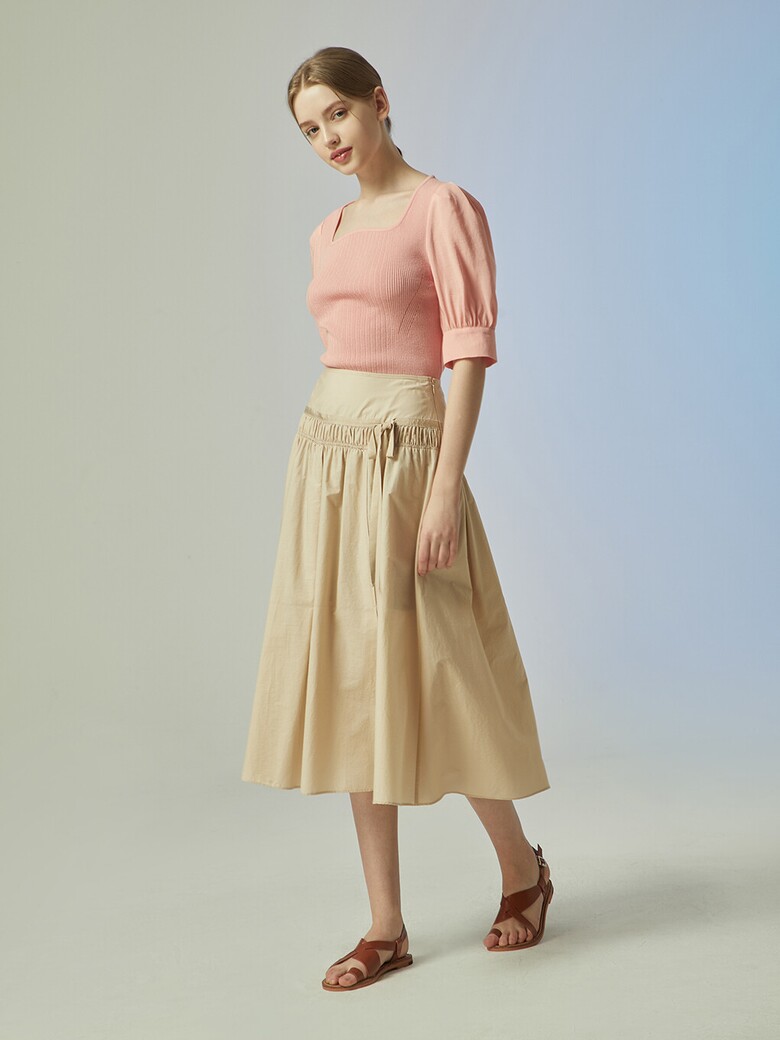 - 스모킹으로 주름을 잡고 리본디테일로 포인트를 준 스커트입니다.