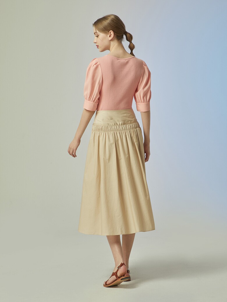 - 다양한 간격의 턱 셔링으로 볼륨감을 더해줍니다.