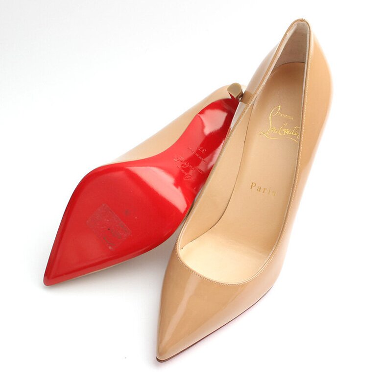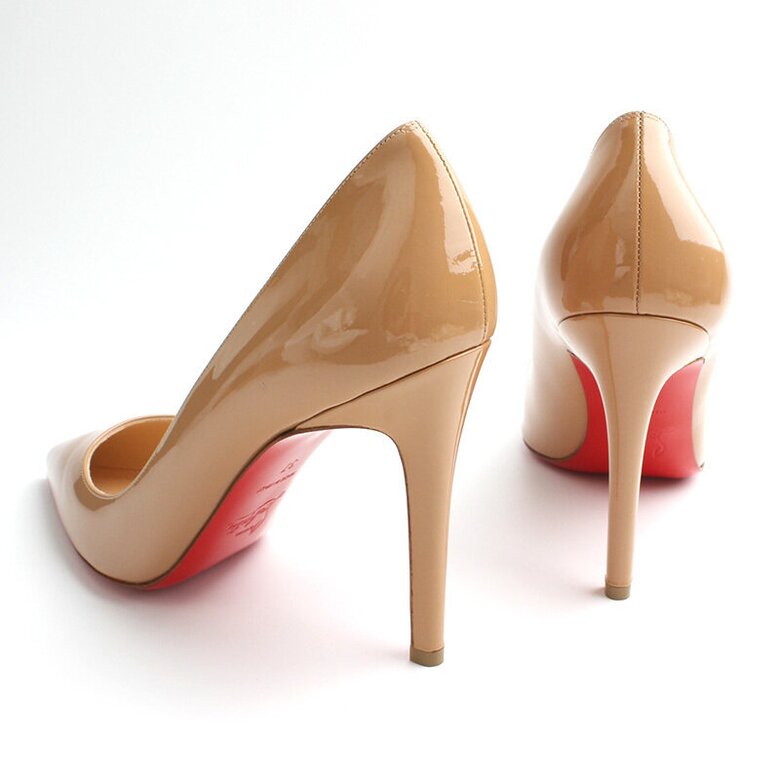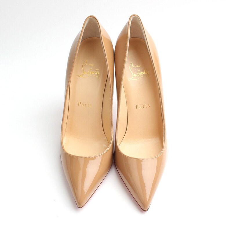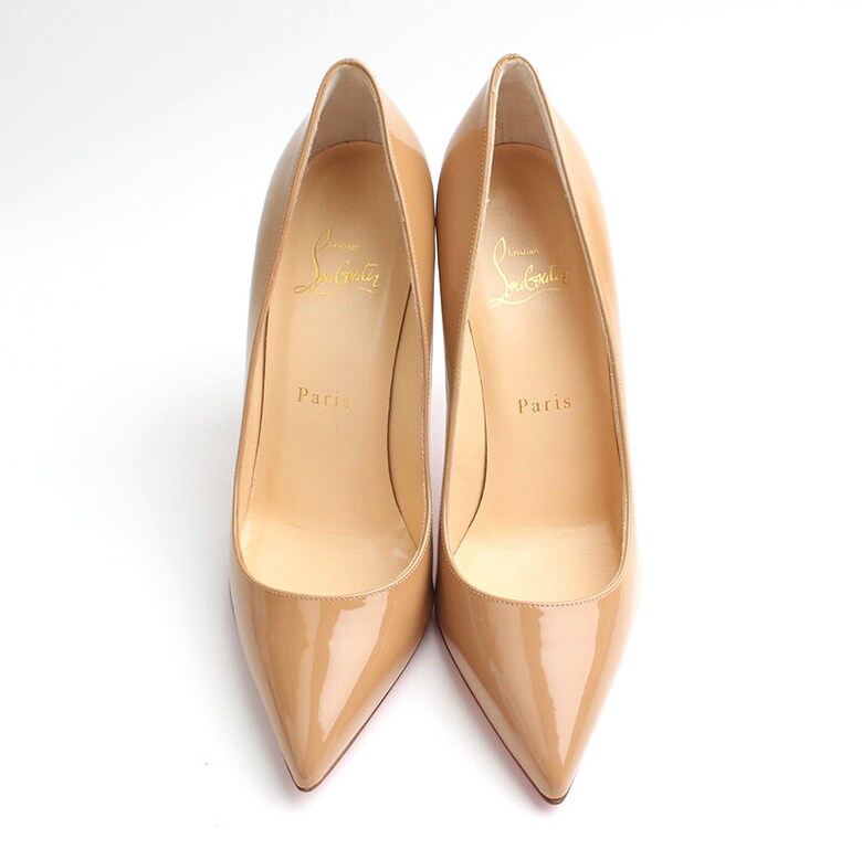 루부탱 샌드베이지 페이던트 펌프스를 선보입니다.