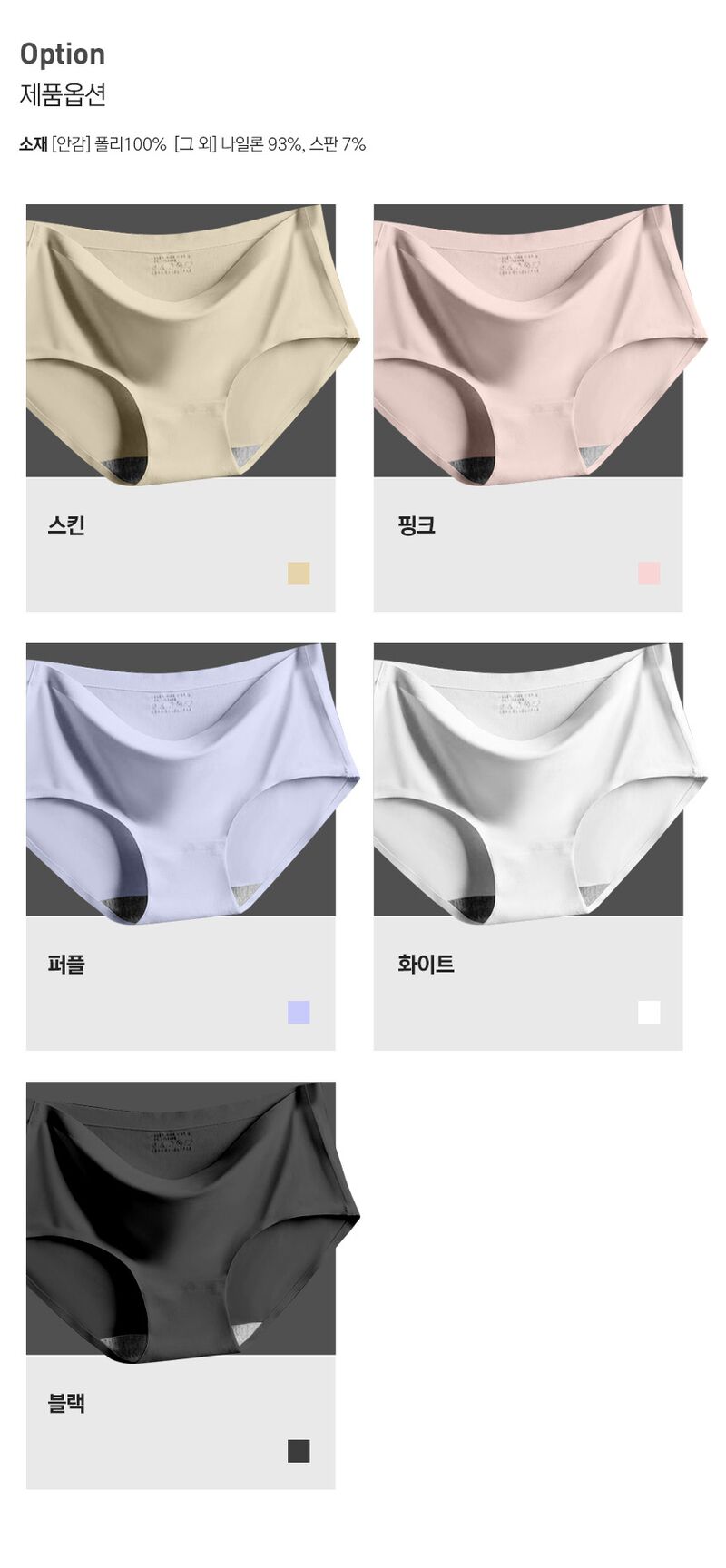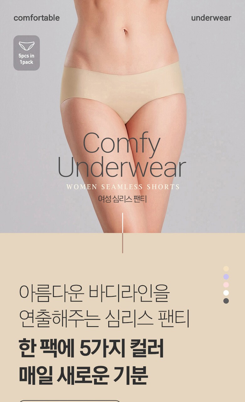 심리스팬티 5장/ 다섯가지 칼라 1팩 / (M/L/XL)