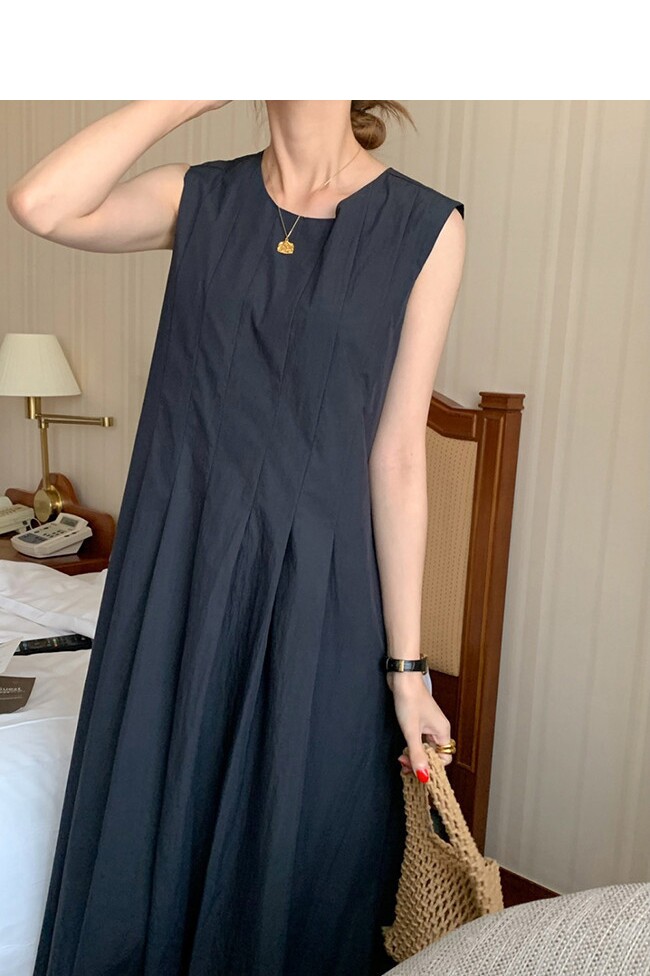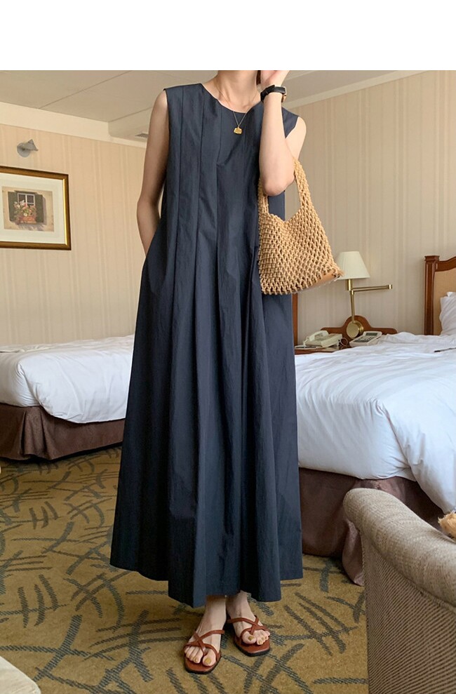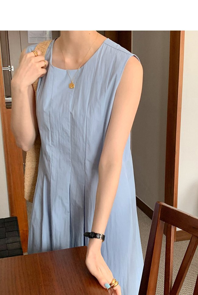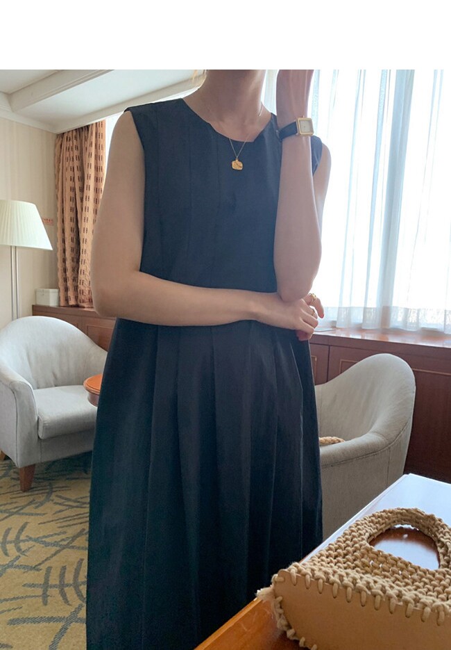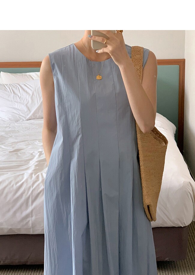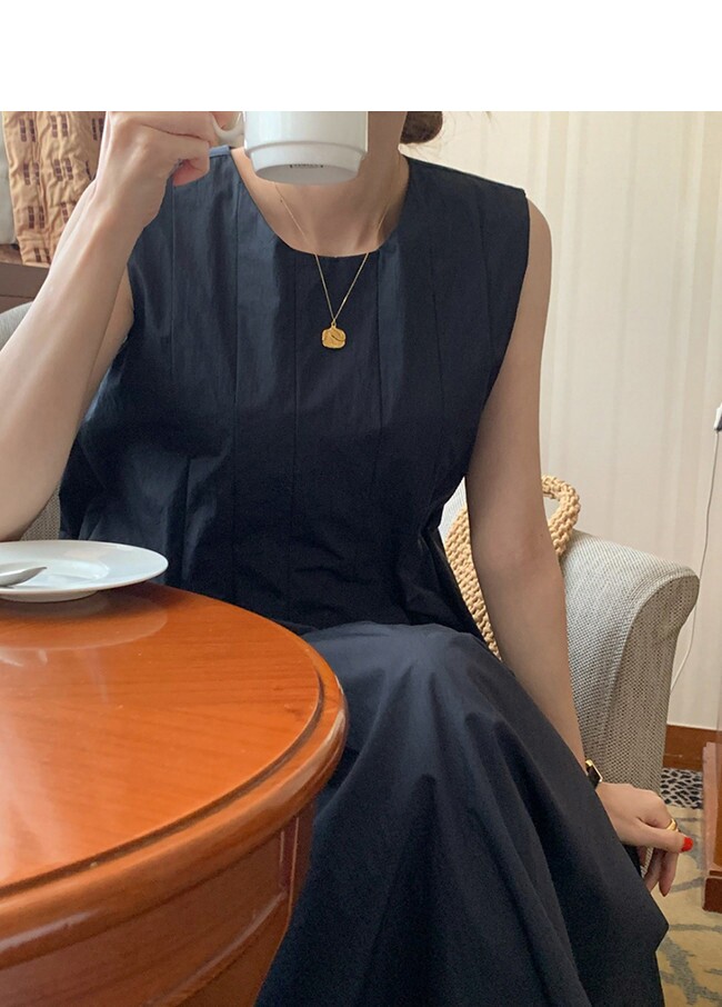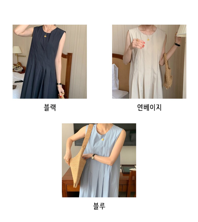 젤라 민소매 핀턱 포인트 주름 원피스 _240420_HY09