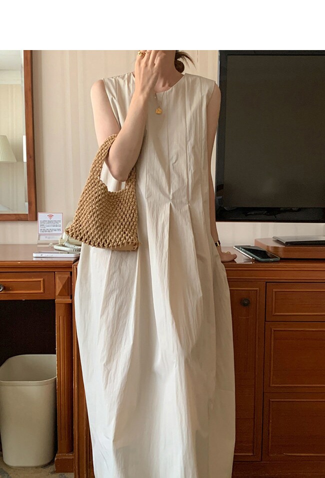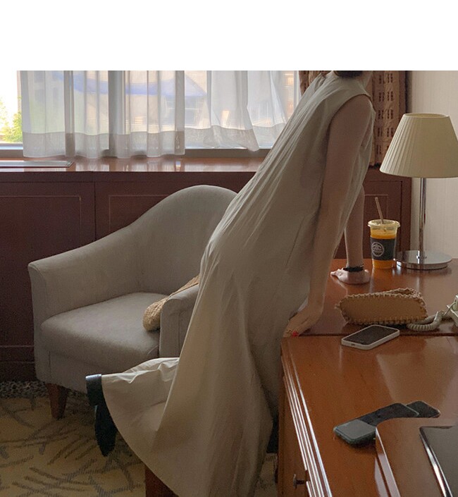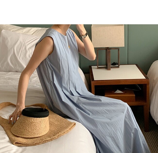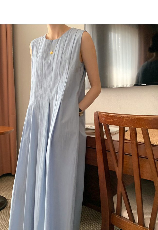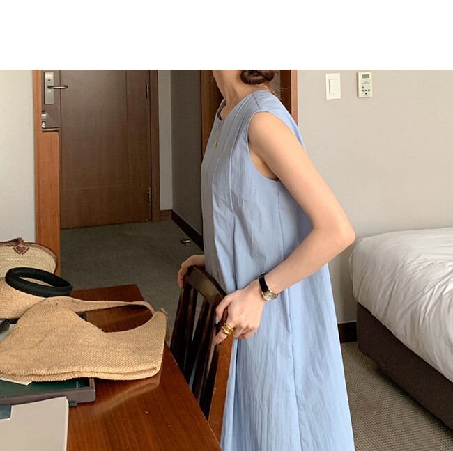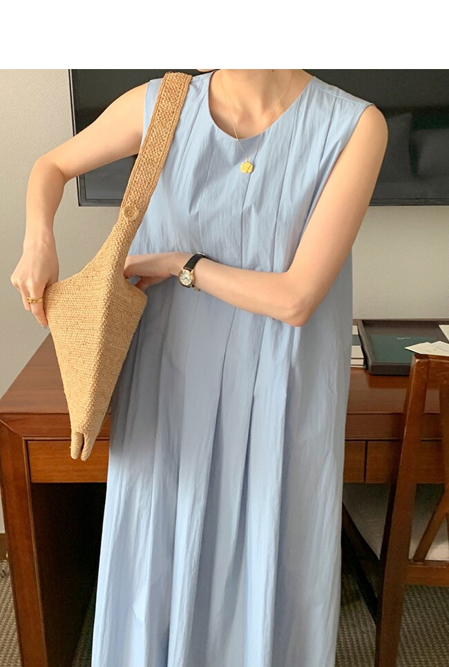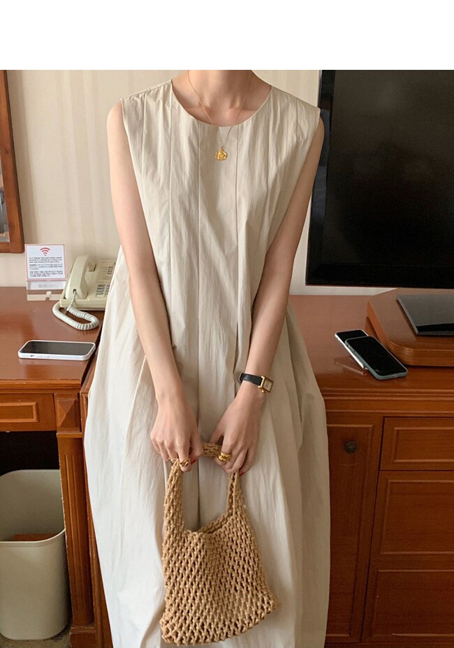 젤라 민소매 핀턱 포인트 주름 원피스 _240420_HY09