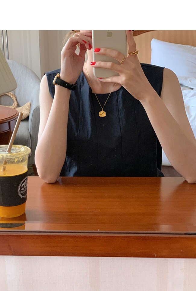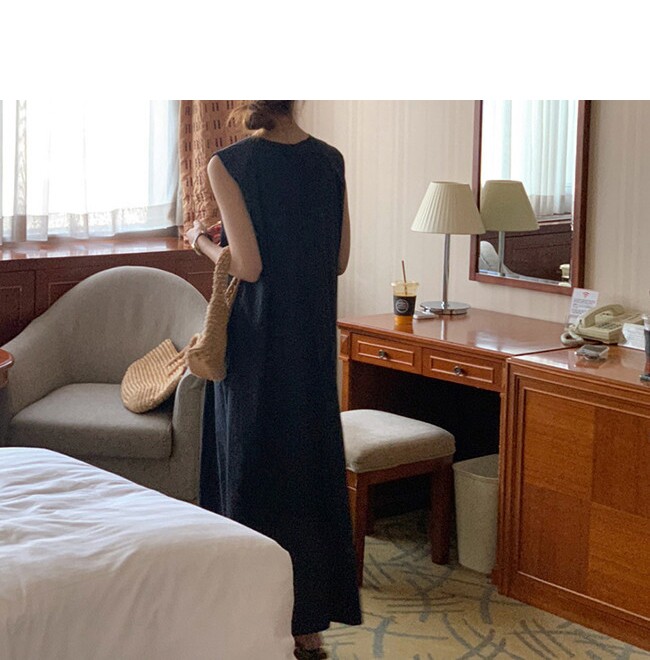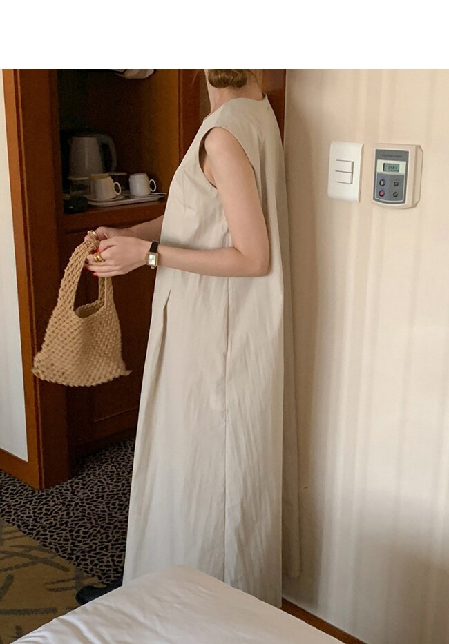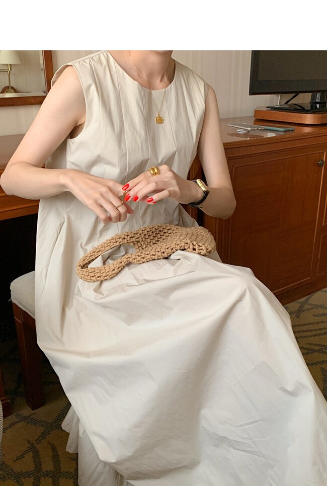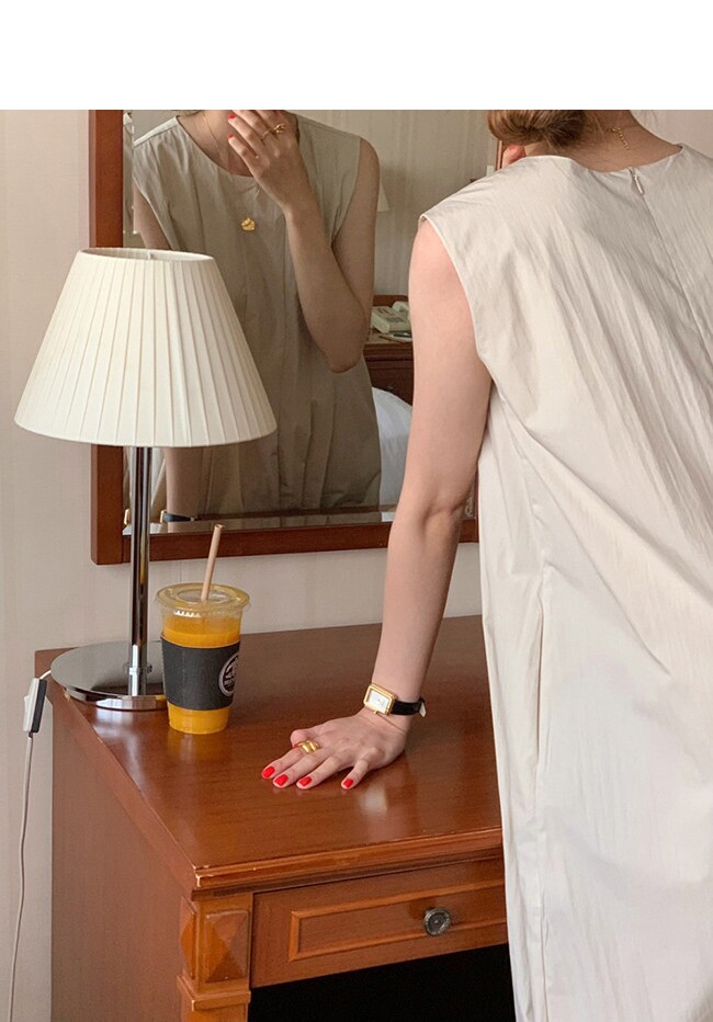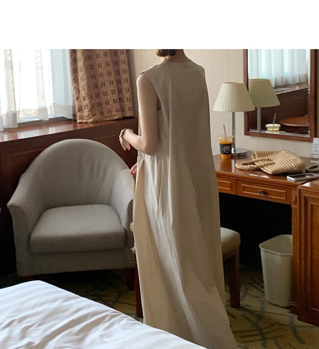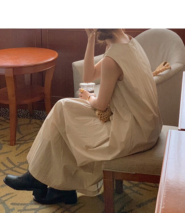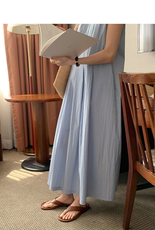 젤라 민소매 핀턱 포인트 주름 원피스 _240420_HY09