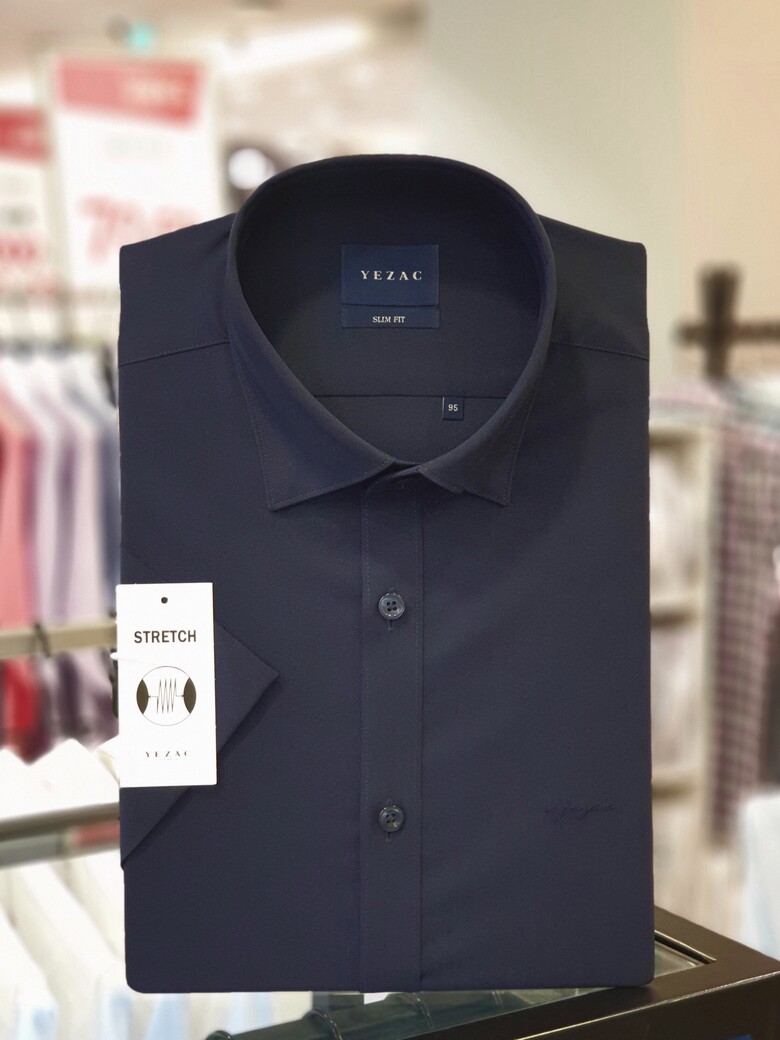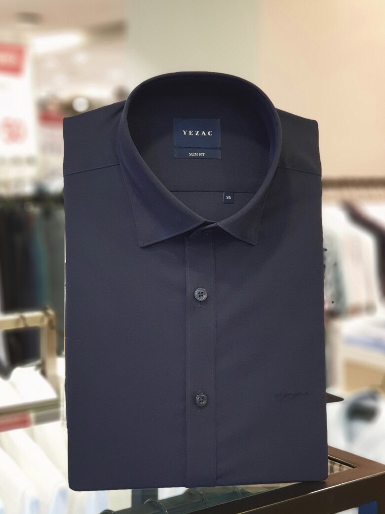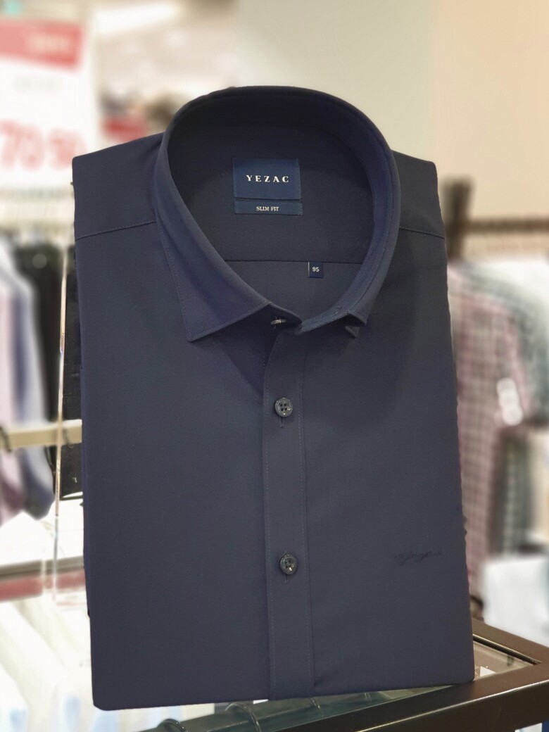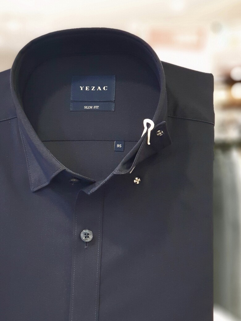 네이비 사방스판 카라스냅버튼 슬림핏셔츠