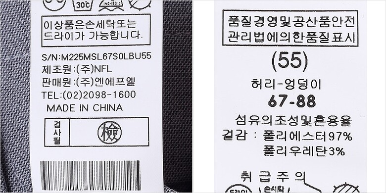 1. 제품 소재 (섬유의 조성 또는 혼용률을 백분율로 표시, 기능성인 경우 성적서 또는 허가서) | 겉감:폴리에스터97% 폴리우레탄3% |