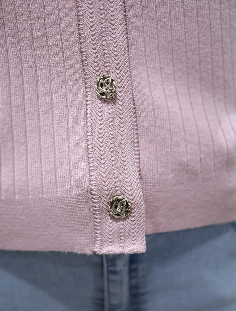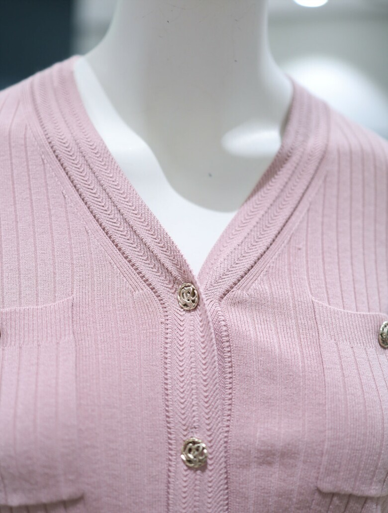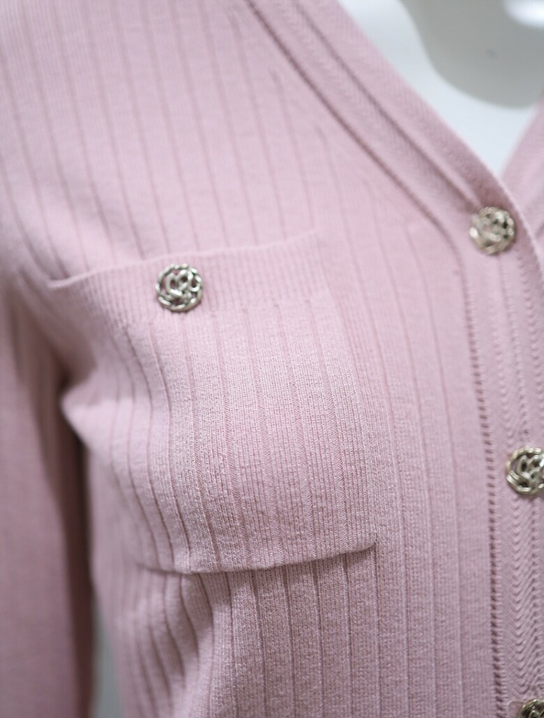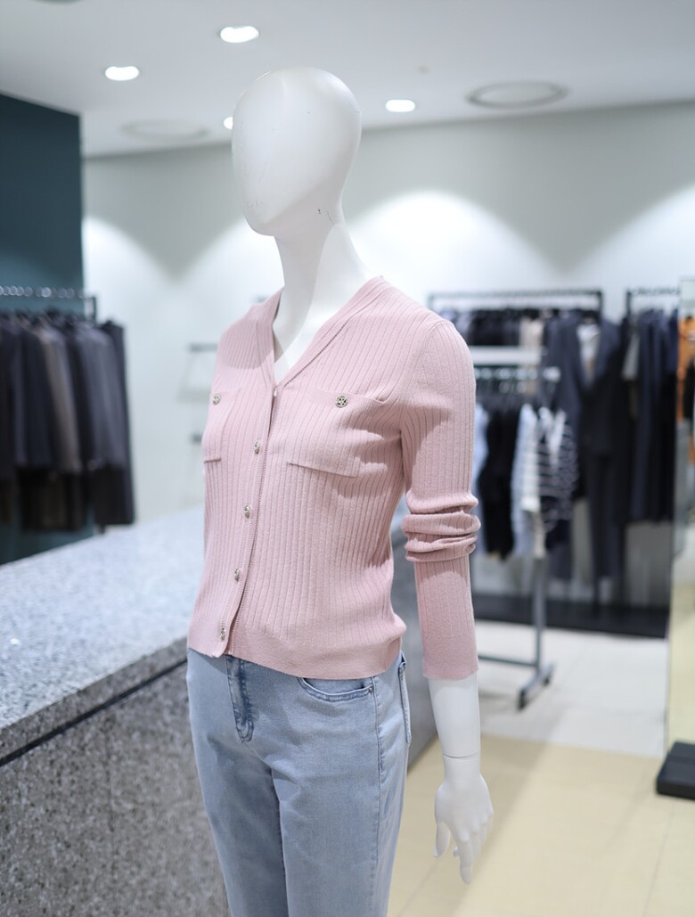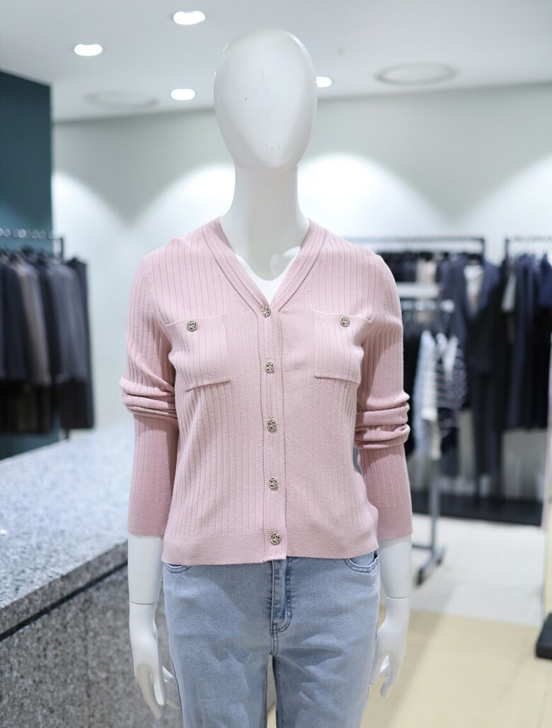 신축성 있는 소재와 리브 짜임의 니트 가디건입니다,