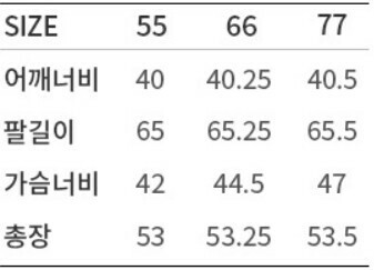 · 안감 : □ 전체 □ 부분 ■ 없음