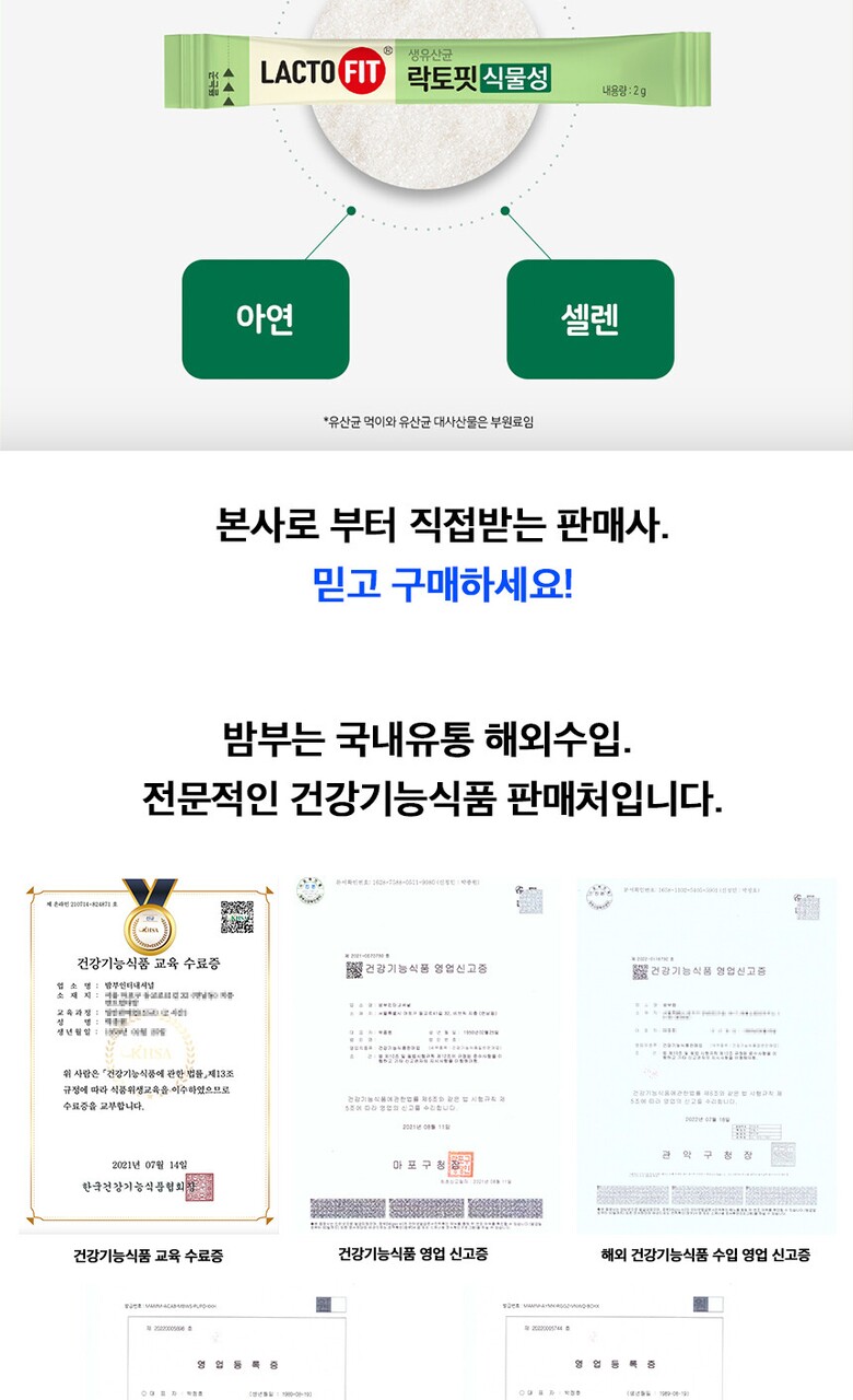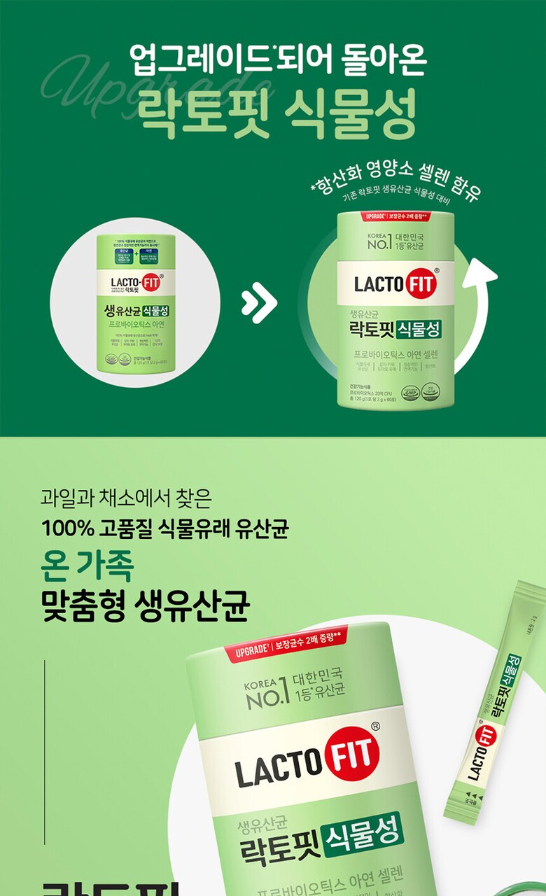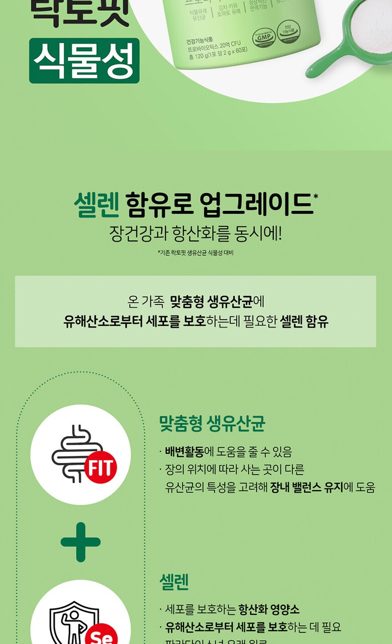 종근당 락토핏 생 유산균 그린 식물성 셀렌 아연 2000mg 60포 2개월분