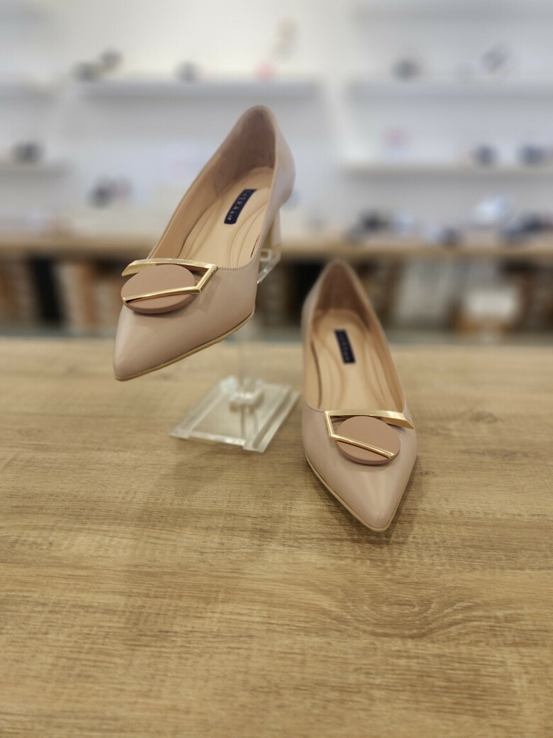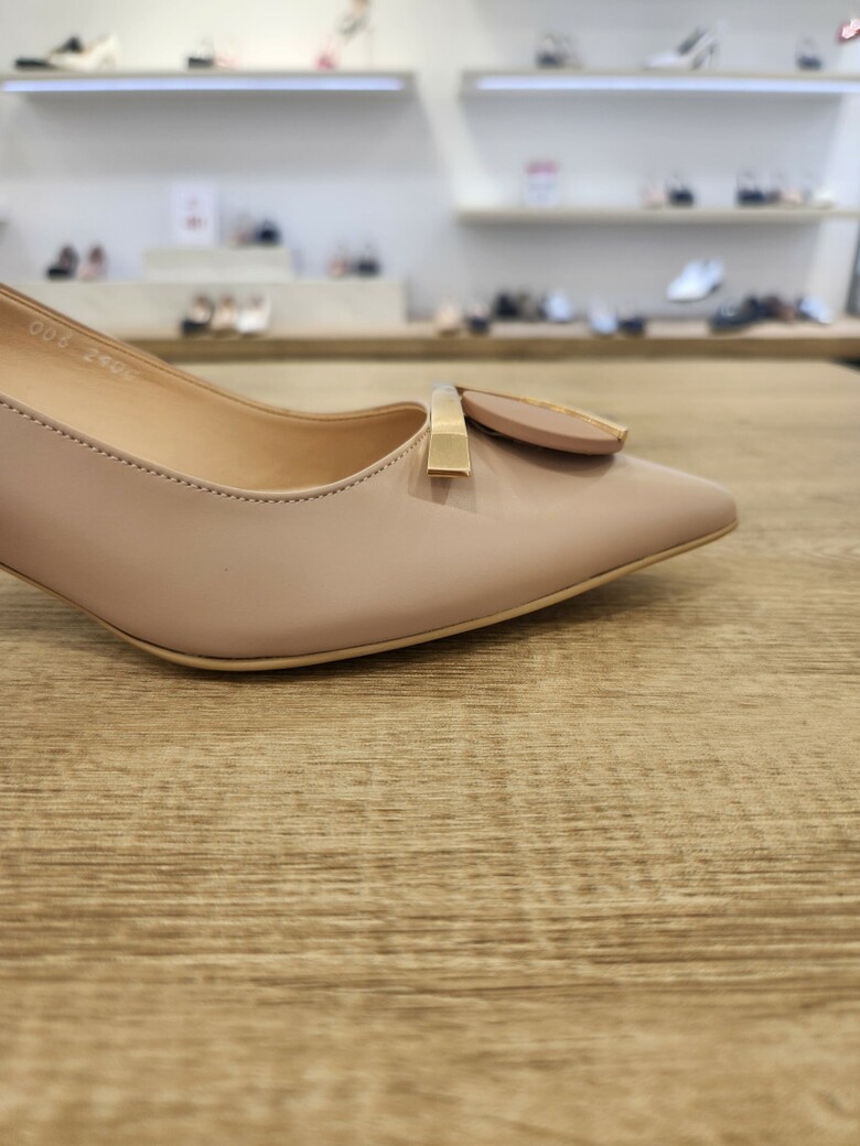 2024 여성 소가죽 포인트토 미들 구두 (5cm)