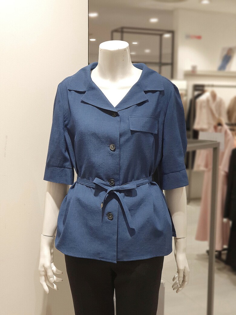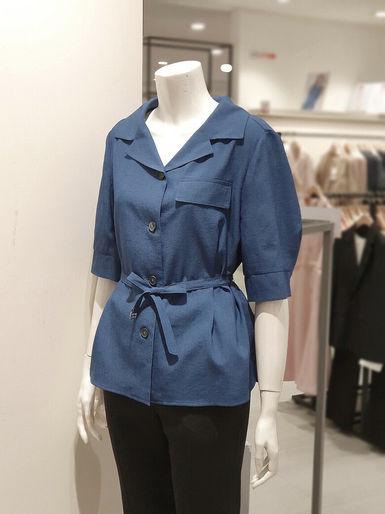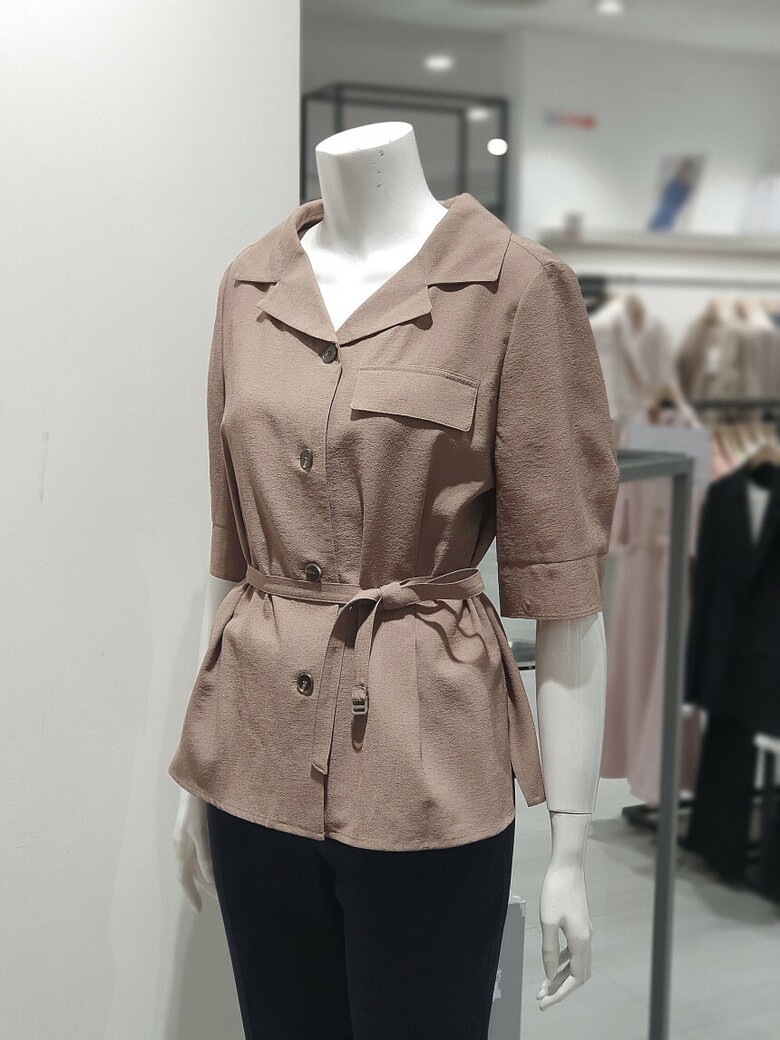 플랩 디테일 벨티드 블라우스 KGBLOF9000