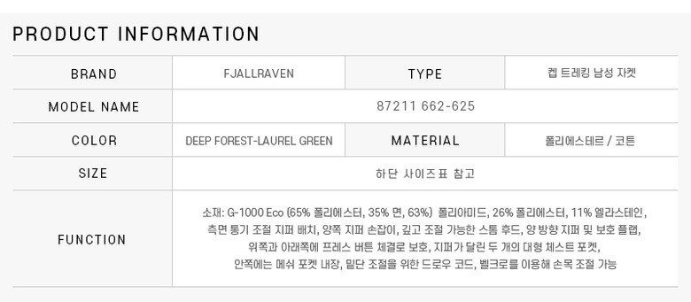 피엘라벤 FJALLRAVEN 87211 662-625 Deep Forest-Laurel Green 남성 자켓