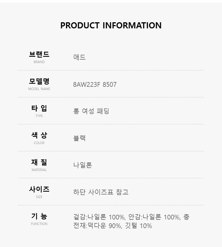 | 6. 세탁방법 및 취급시 주의사항 | 상세페이지참조 |