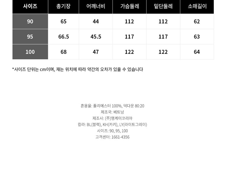 | 1. 제품 소재 (섬유의 조성 또는 혼용률을 백분율로 표시, 기능성인 경우 성적서 또는 허가서) | 상세 참조 |