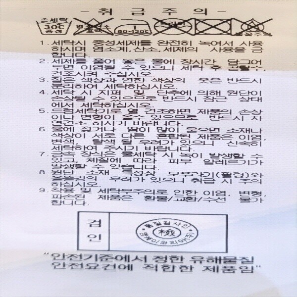 세탁방법 및 취급시 주의사항 : 상세 참조
