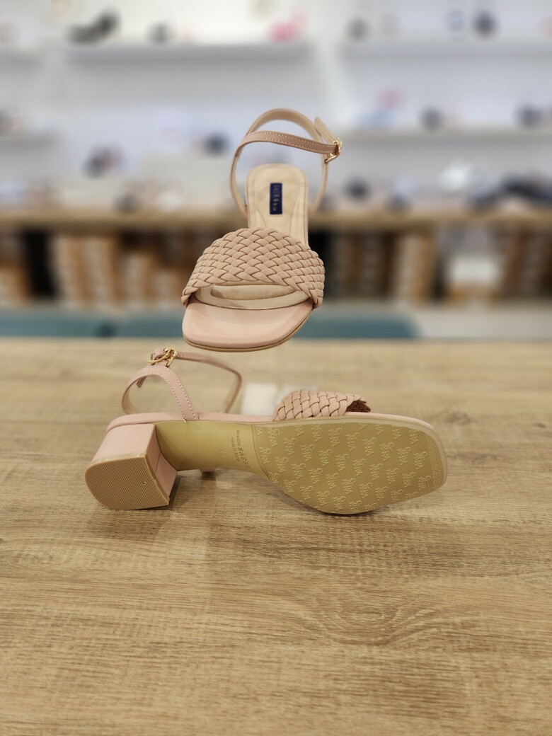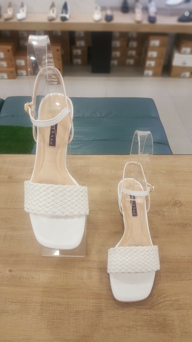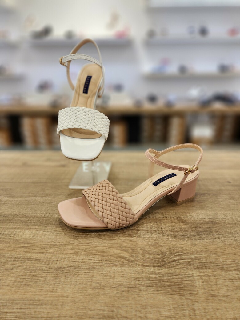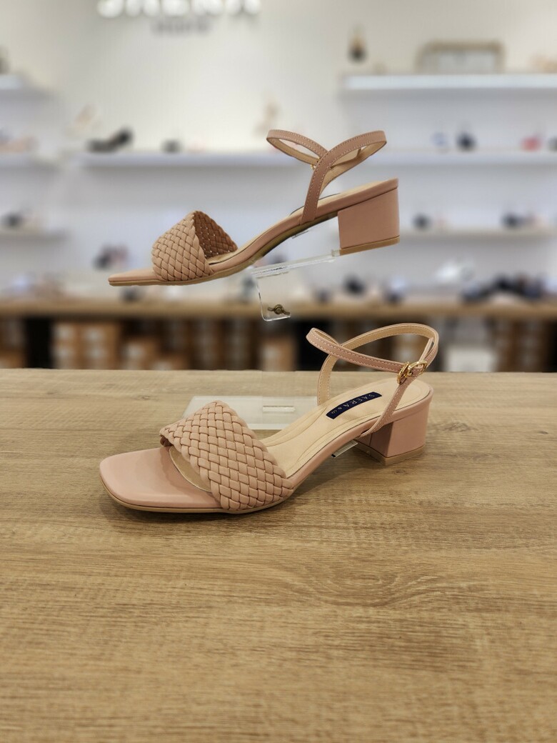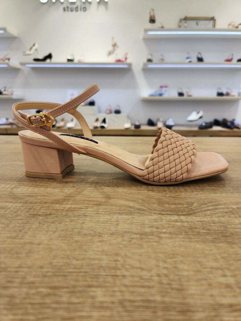 2024 여성 양가죽 스퀘어토 미들 스트랩 샌들 (4cm)