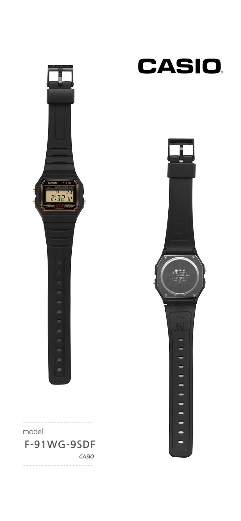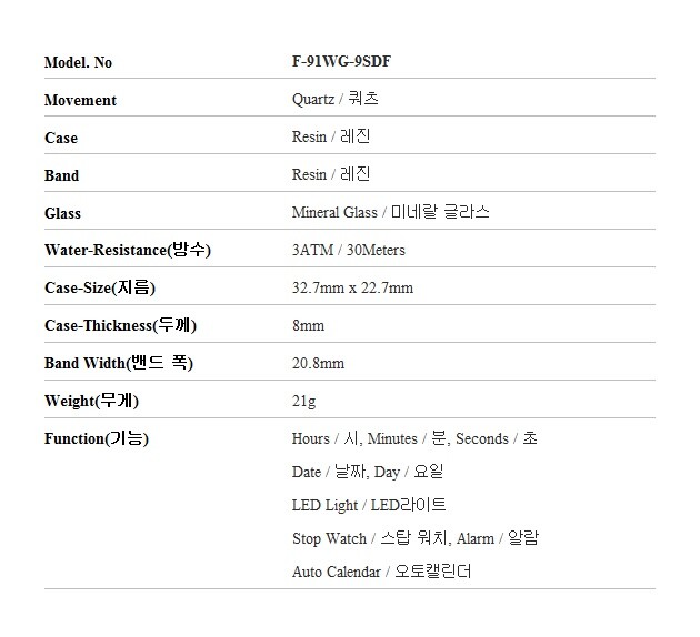 카시오 CASIO F-91WG-9QHDF 디지털 스퀘어 빈티지 공용 우레탄시계