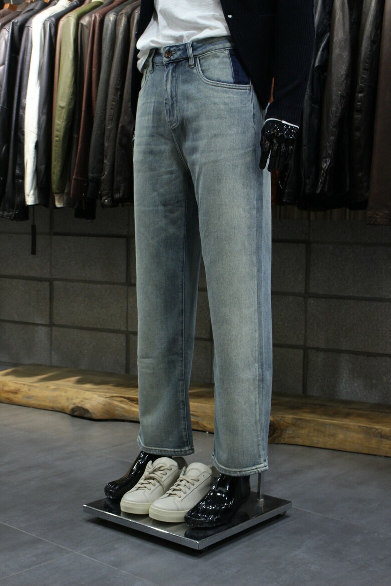 연청워시드 와이드핏 배색코튼진 m-gjean07bl