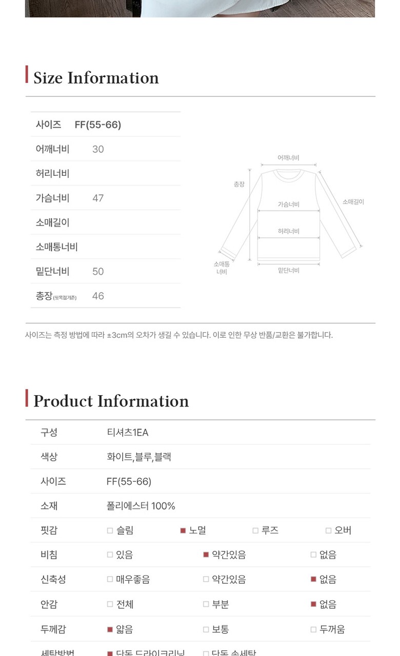 • 처음 배송된 상품상태와 다를 경우(세탁/착용 후 외출하신 경우) 반품이 불가합니다.