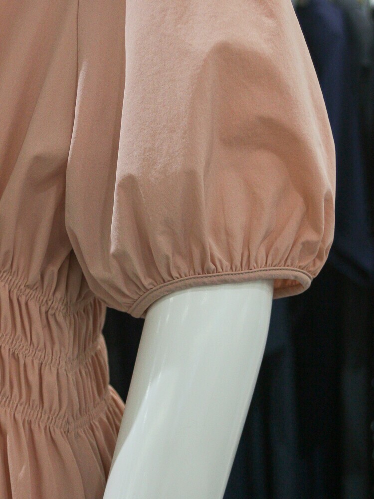 퍼프소매로 여성스러운 무드가 느껴지며