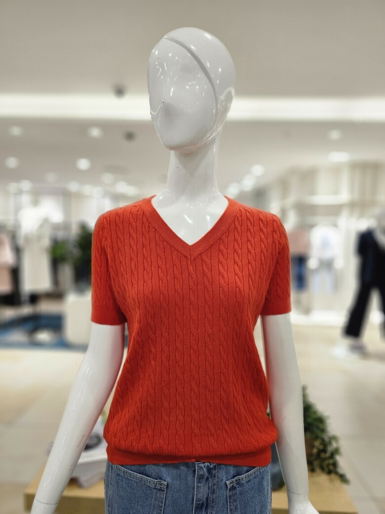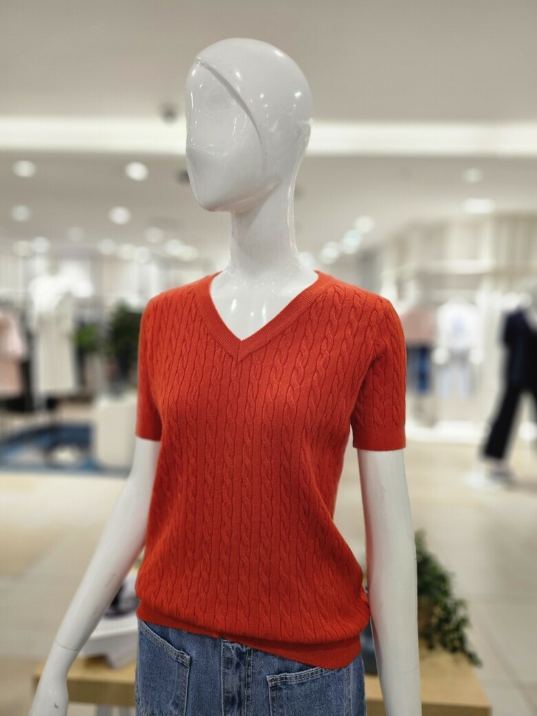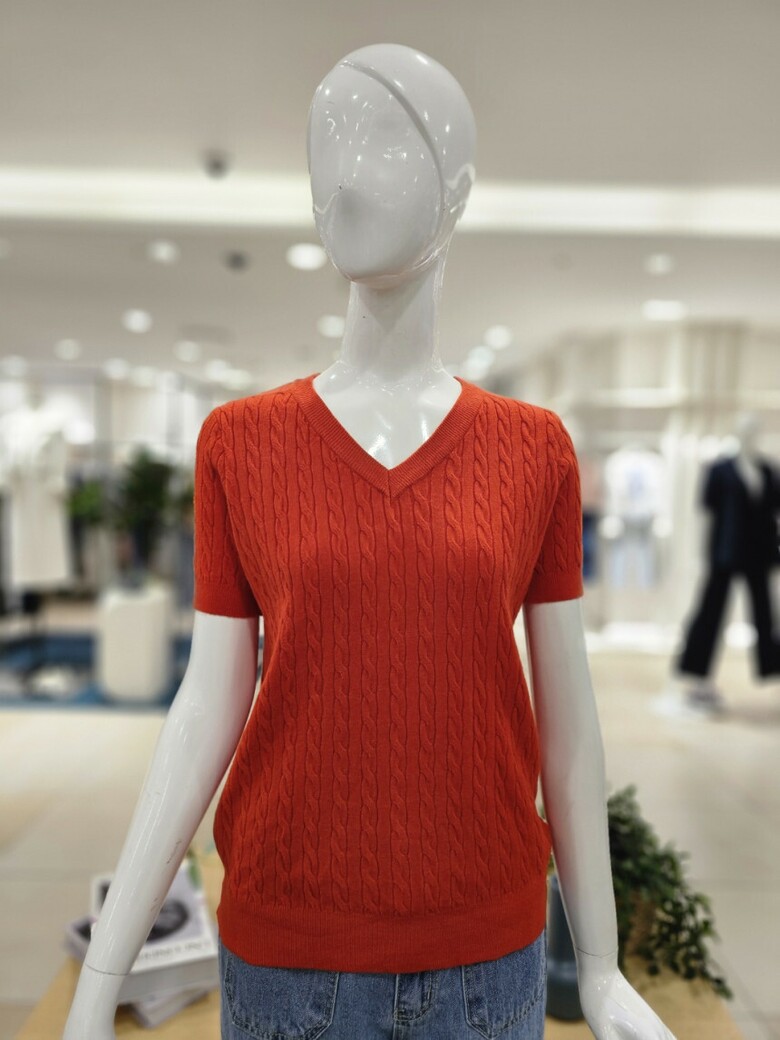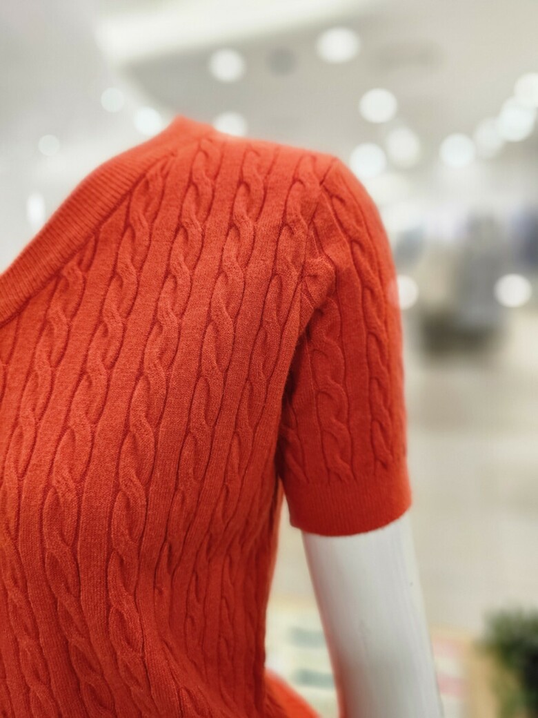 꽈배기 반소매 니트로 , 청바지나 스커트등 다양한 바텀과 스타일리시한 코디가 가능합니다.