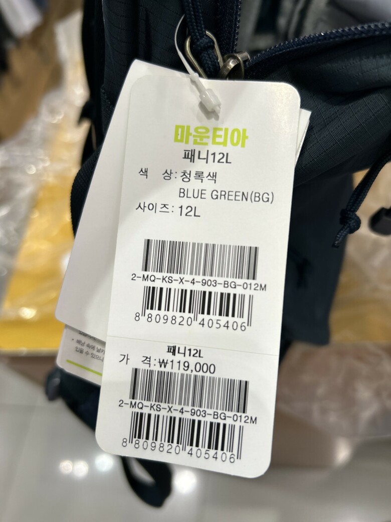 | 2. 소재 | 겉감 - 나일론 100% 배색 - 폴리에스터 100% 안감 - 폴리에스터 100% |
