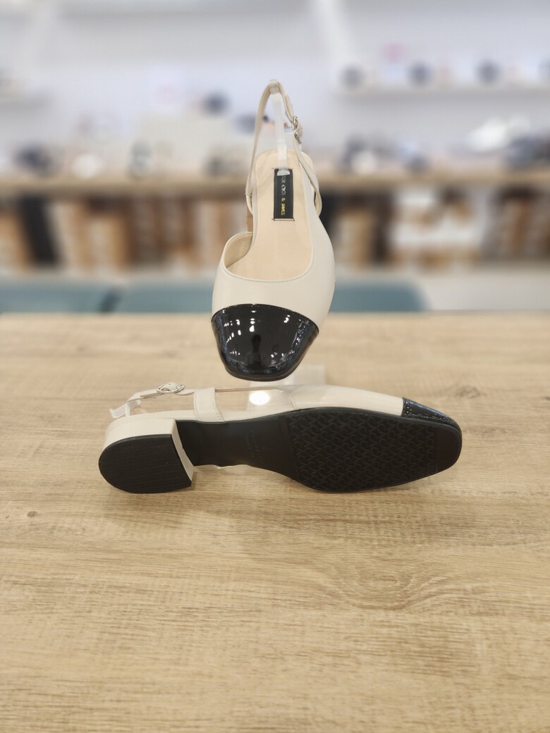 [세라] (2color) VICTOR CHOI & JAMES 굽 2cm 양가죽 콤비 슬링백 w23s306