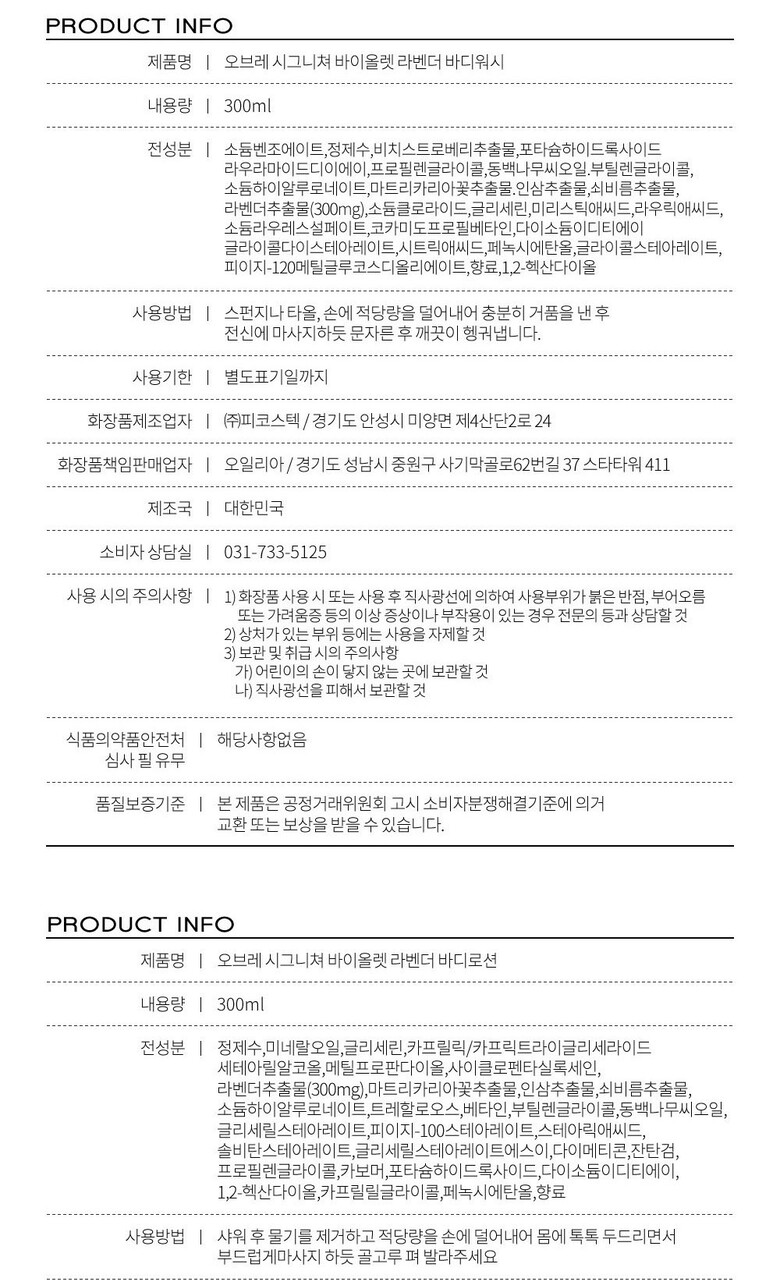 [오일리아] 오브레 바디&헤어4종 SET (샤워젤 300ml+바디로션 300ml+샴푸 300ml+린스 300ml)