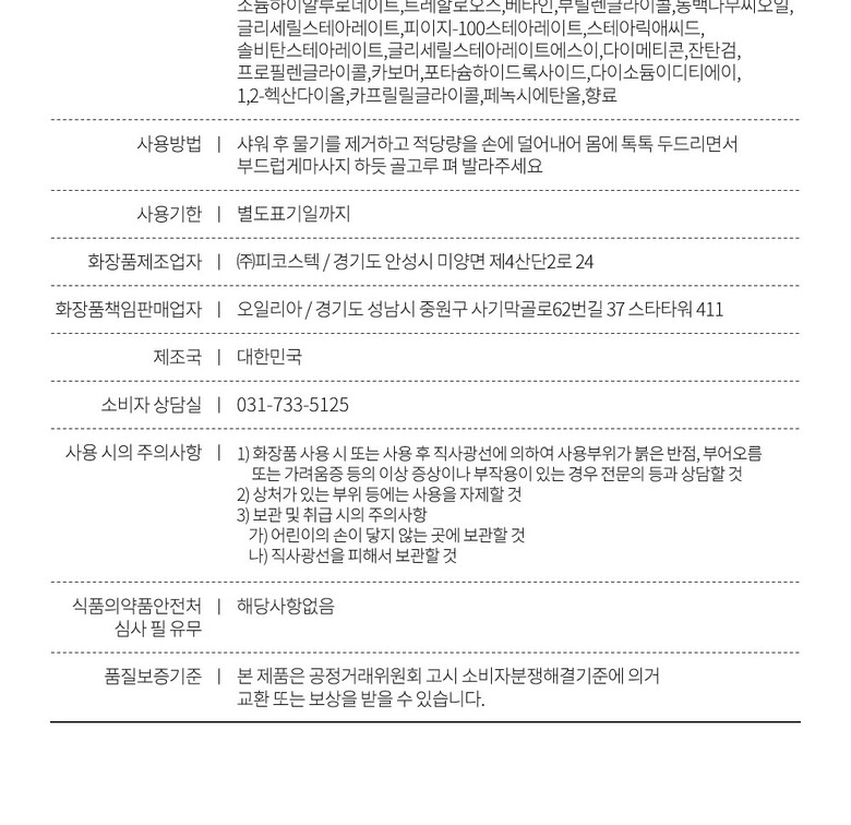 8. 기능성 화장품의 경우 화장품법에 따른 식품의약품안전청 심사 필 유무 | 상세이미지 참조 |