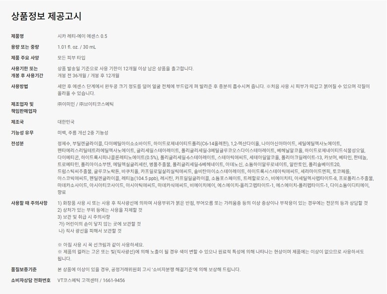 [VT코스메틱] 시카 레티-에이 에센스 0.5 30ml