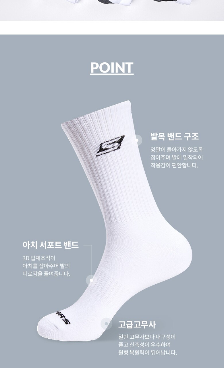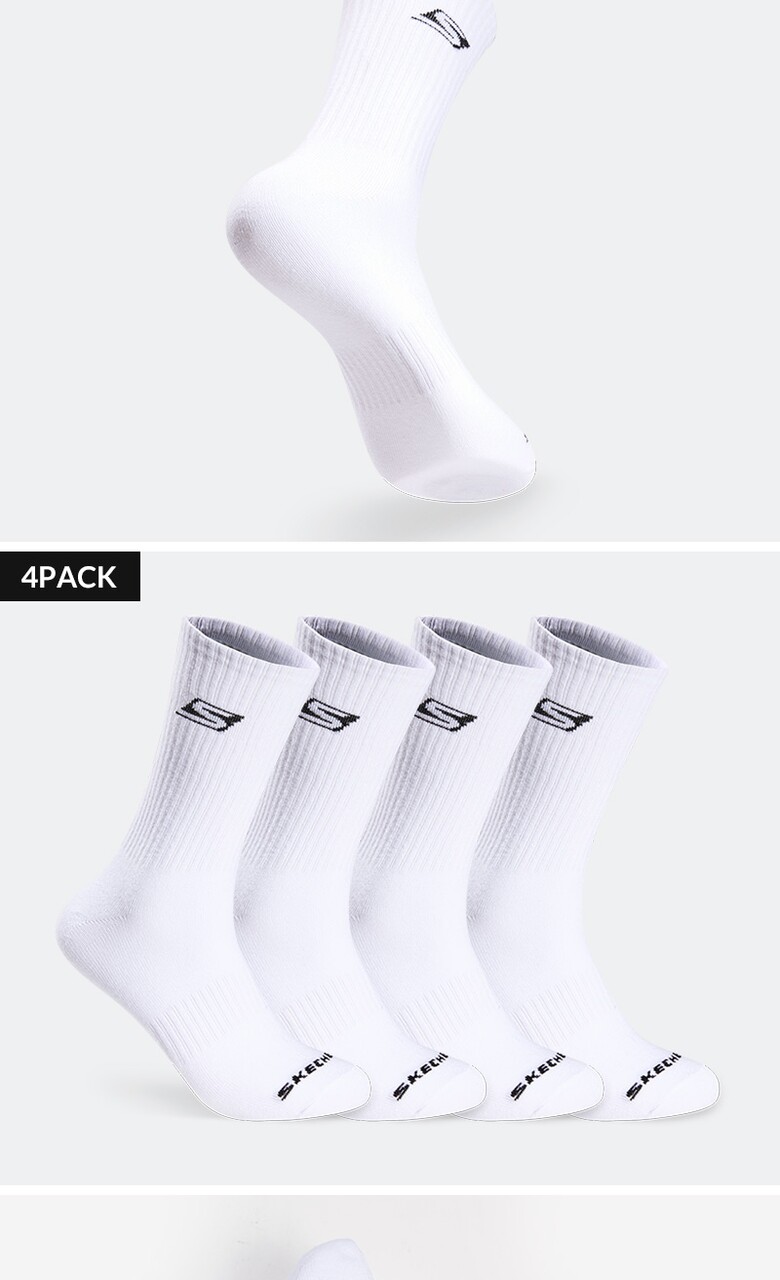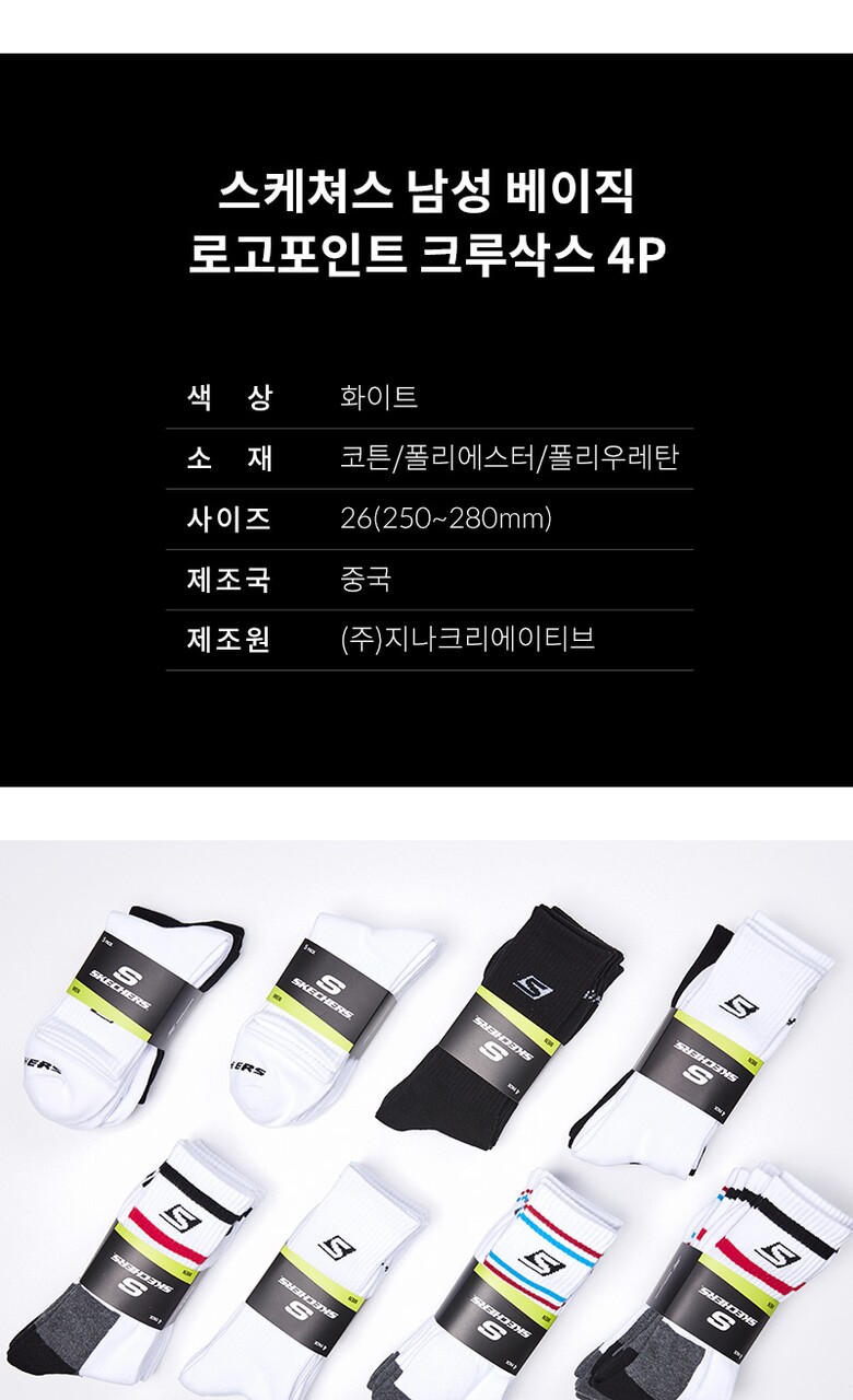 스케쳐스 남성 베이직 로고포인트 크루삭스 4P_WH