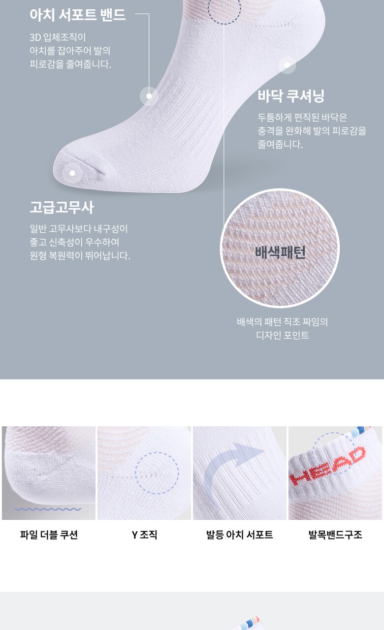 헤드 여성 스포츠파일 빽컬러포인트 발목양말 4P_MX