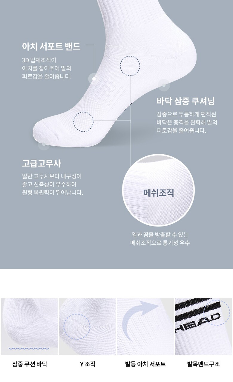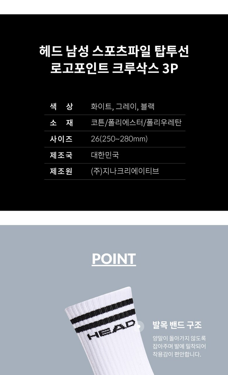 헤드 남성 스포츠파일 탑투선 로고포인트 크루삭스 3P_MX