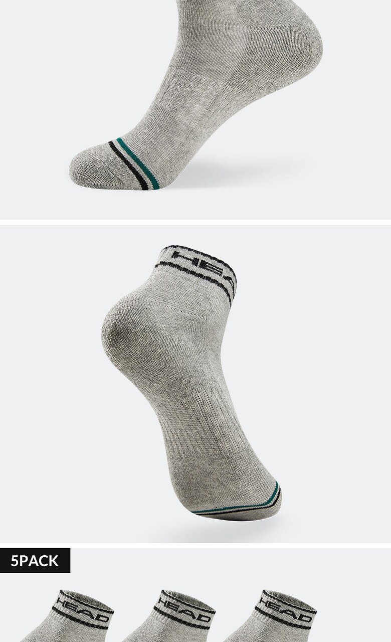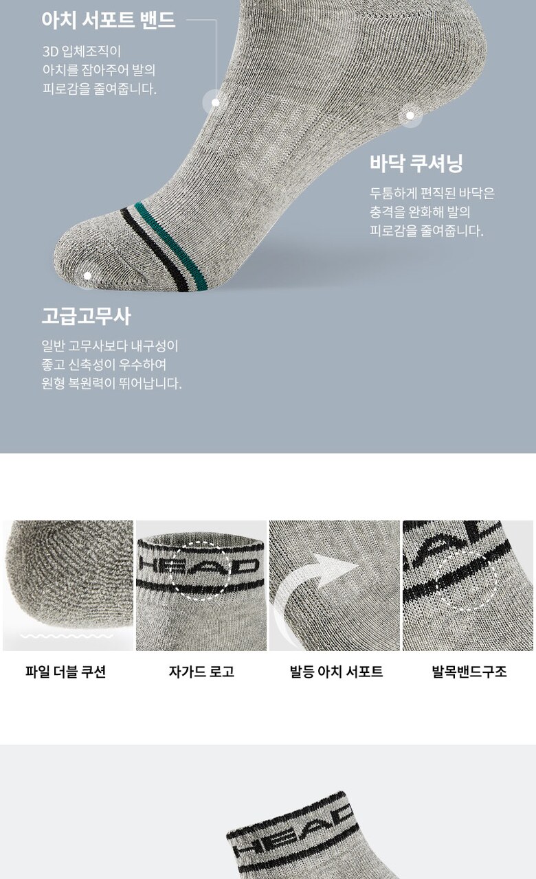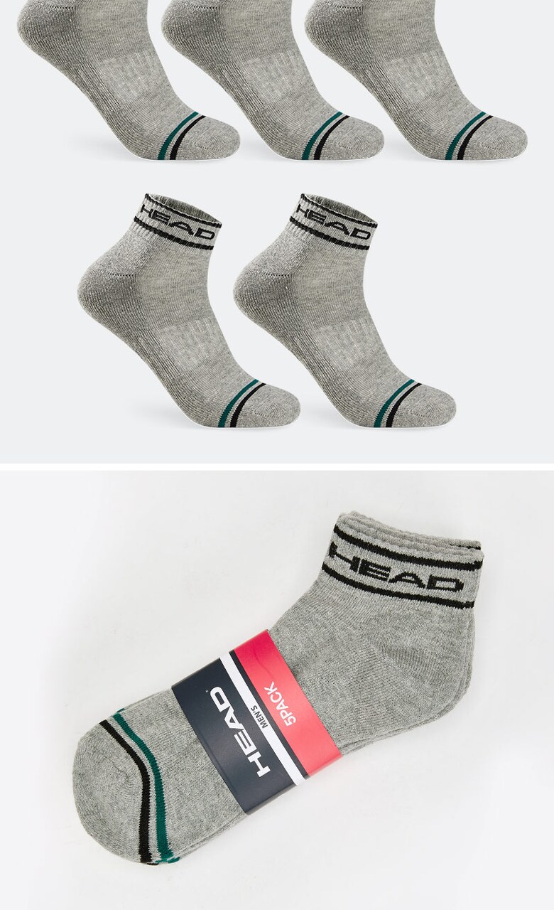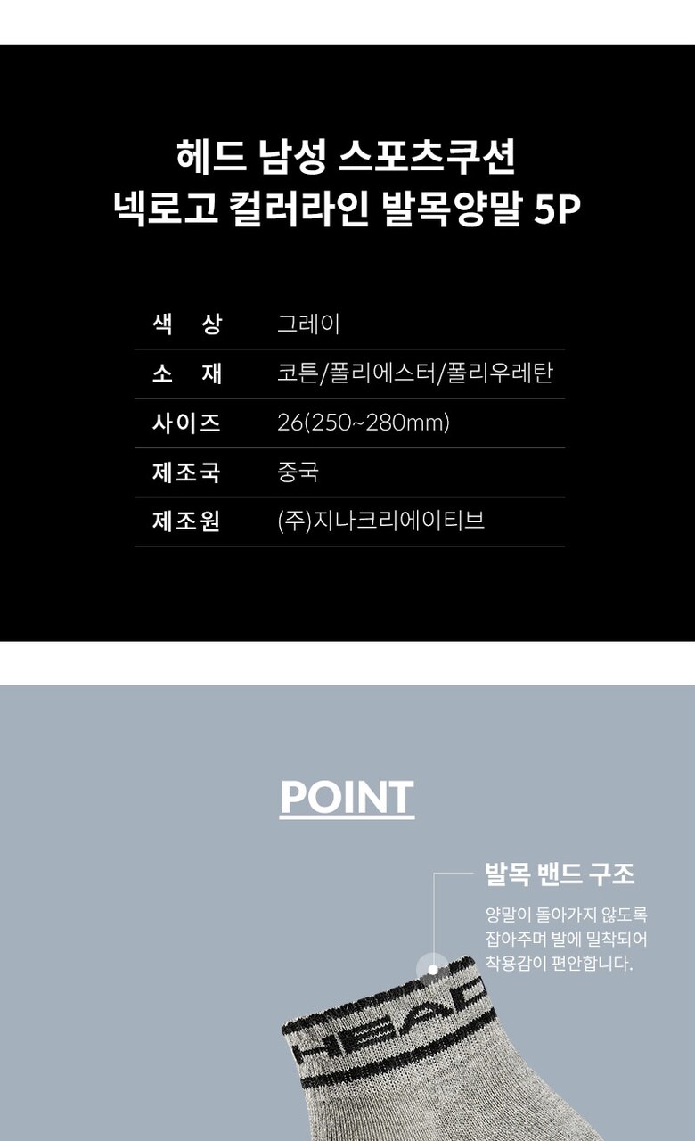 헤드 남성 스포츠 쿠션 넥로고 컬러라인 발목양말 5P_GY