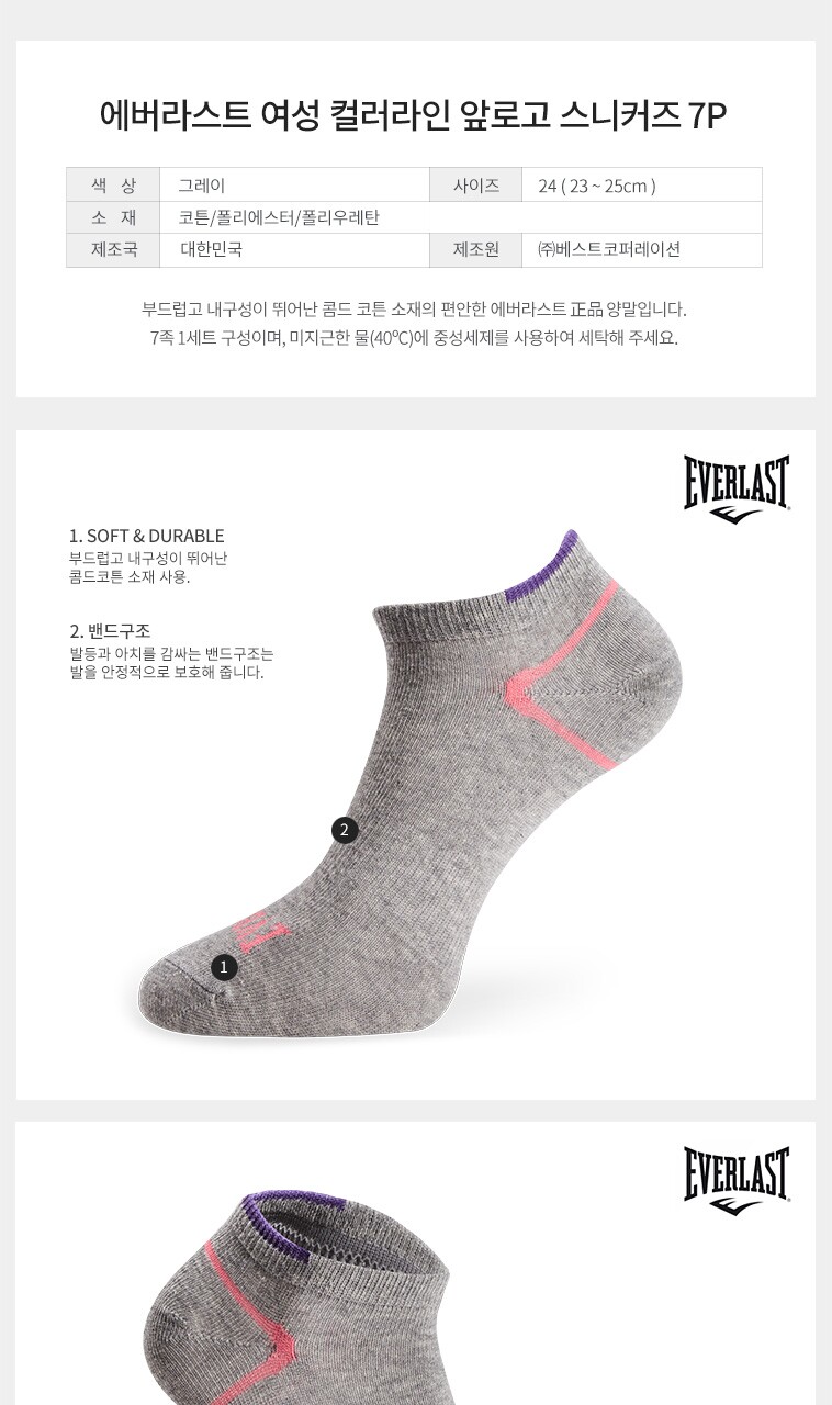 에버라스트 여성 컬러라인 앞로고 스니커즈 7P_GY