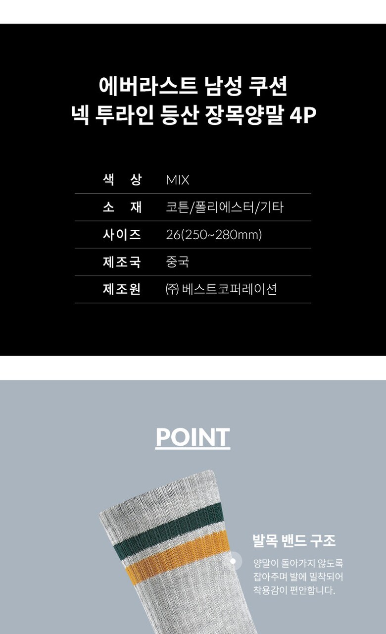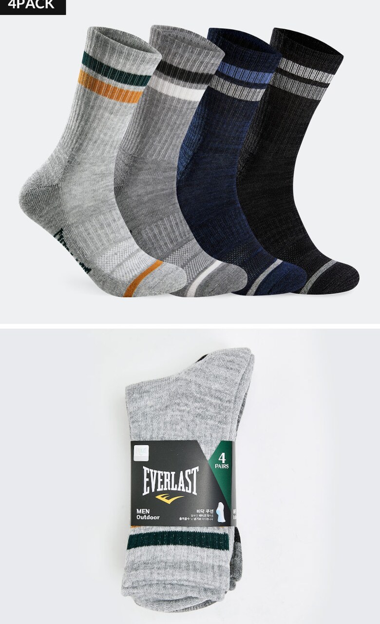 에버라스트 남성 쿠션 넥 투라인 등산 장목양말 4P_MX