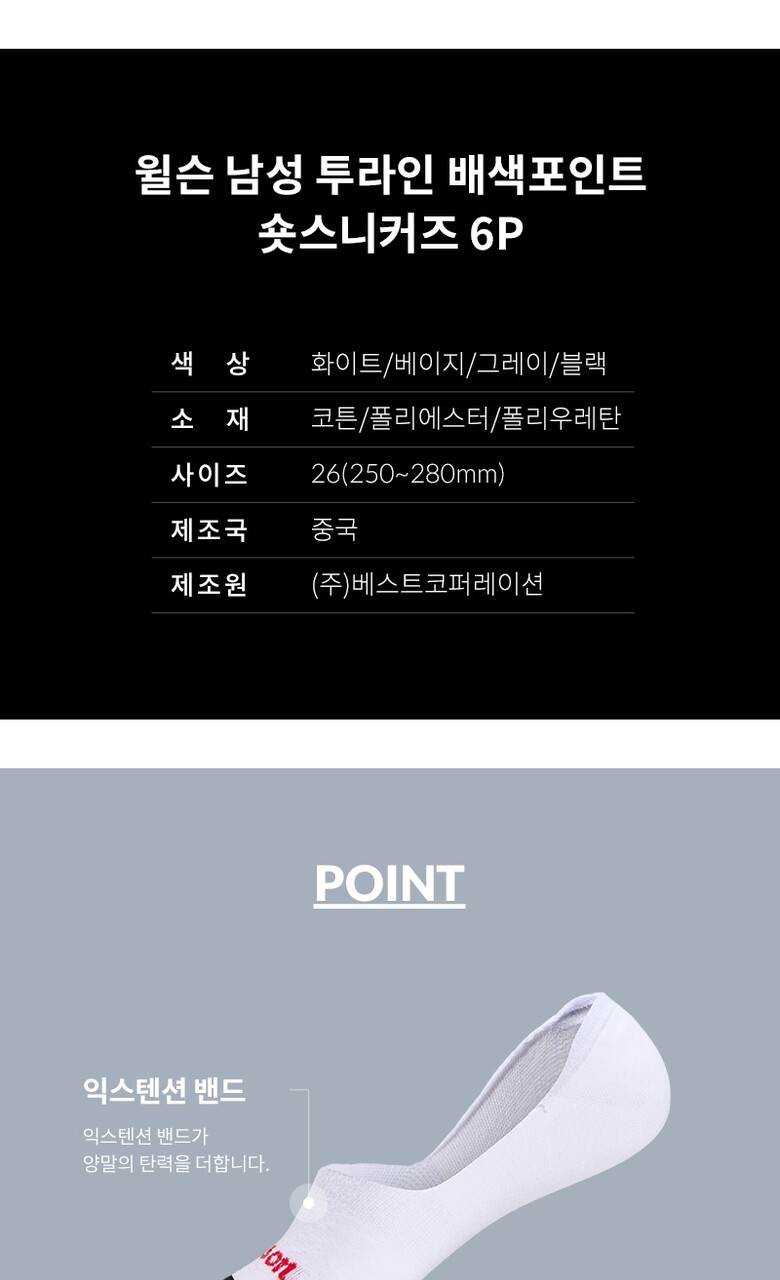 윌슨 남성 투라인 배색포인트 숏스니커즈 6P_MX