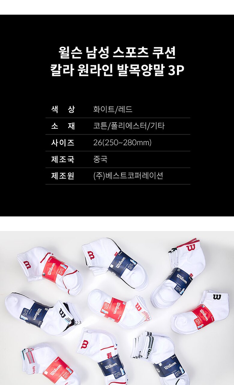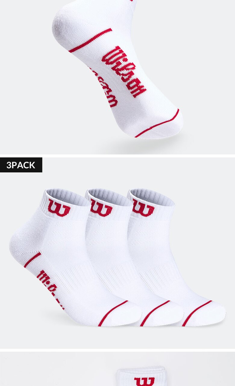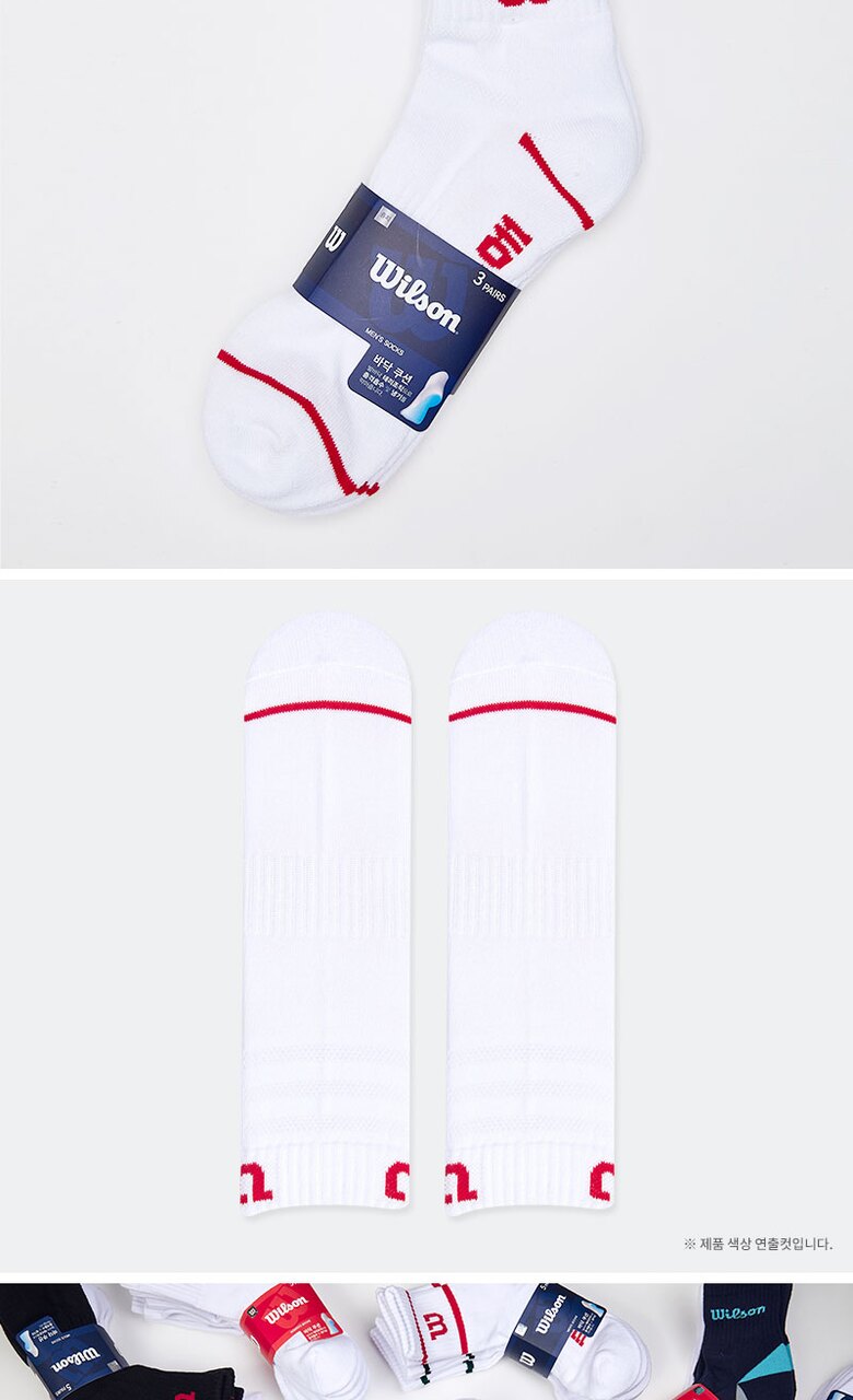 윌슨 남성 스포츠 쿠션 칼라 원라인 발목양말 3P_WH/RD